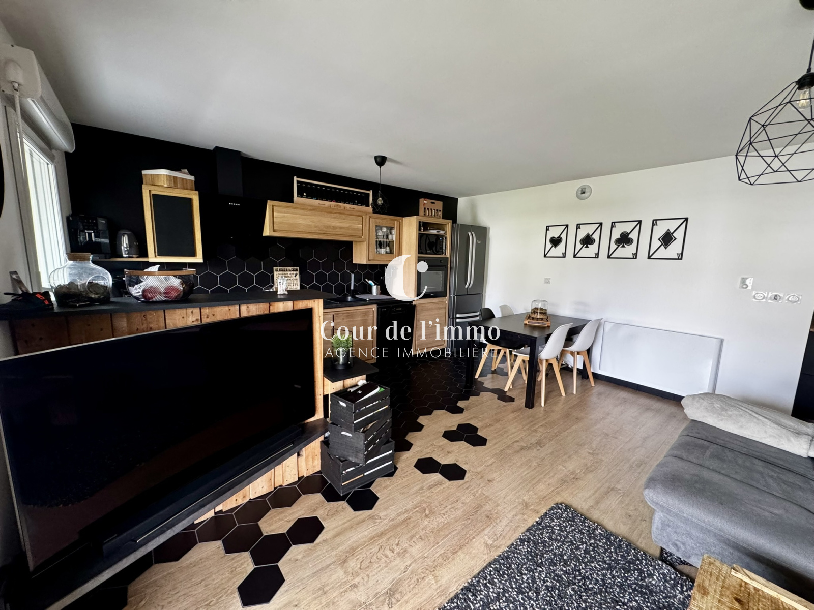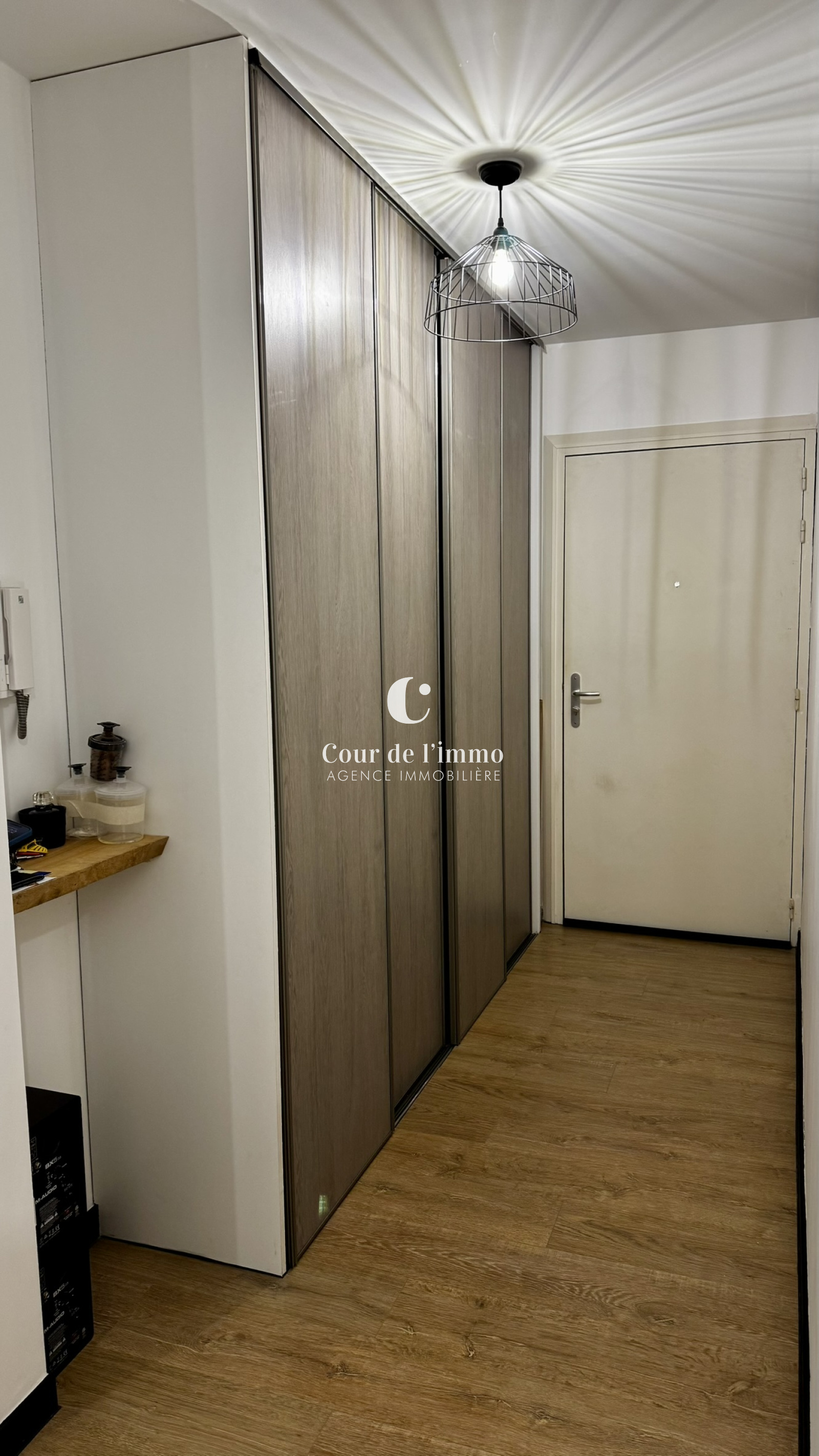 - Entrée avec placard desservant une belle pièce de vie lumineuse avec cuisine équipée ouverte sur le séjour et accès au balcon.