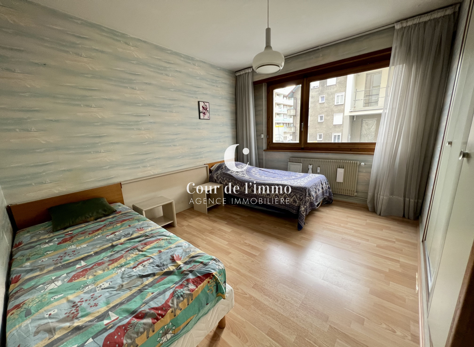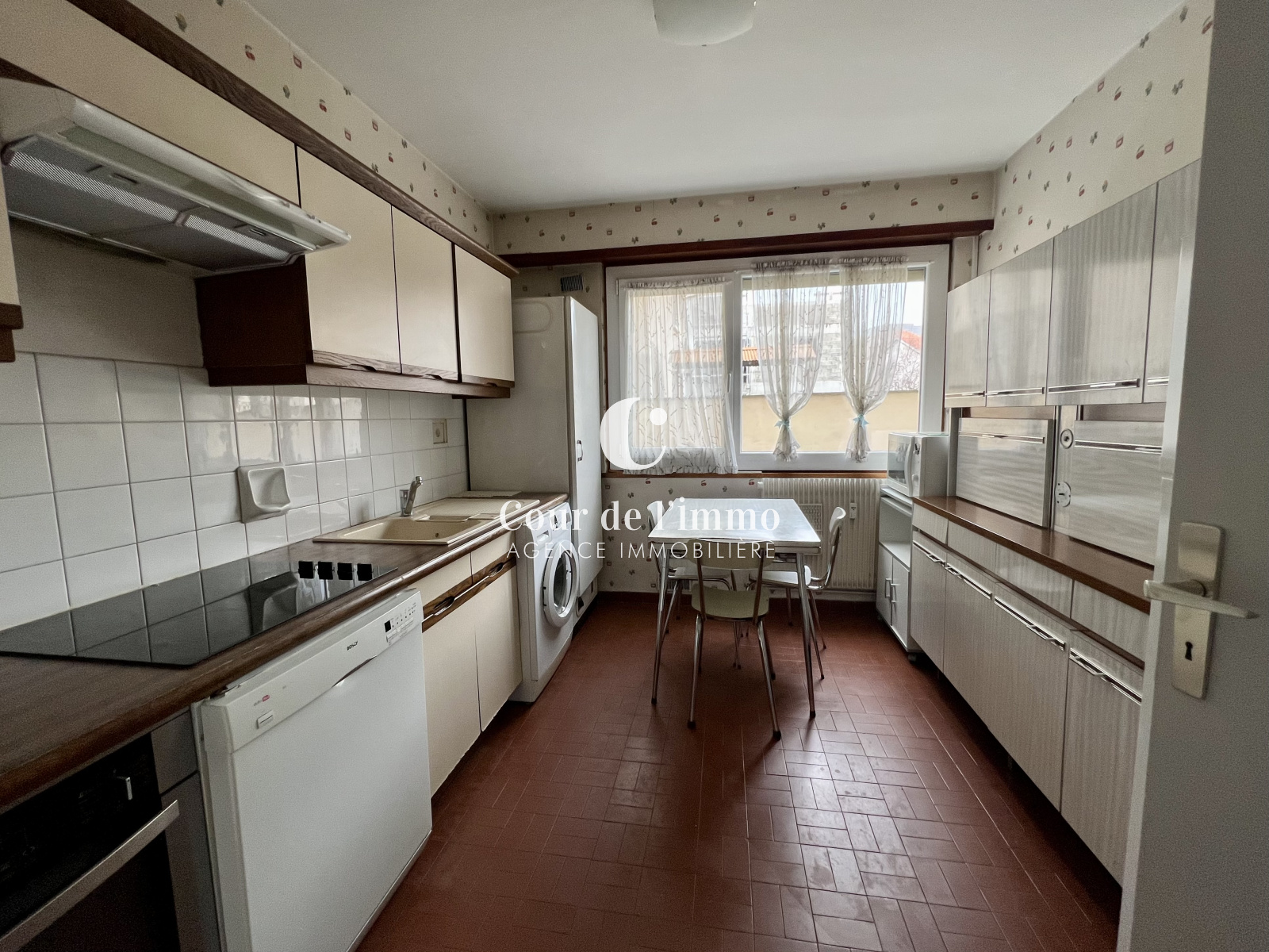 Situé à ANNEMASSE (74100), à proximité de la gare (CEVA), au 1er étage d'une résidence sécurisée, appartement de type 4 de 92m² LOI CARREZ environ, comprenant : une entrée avec placards, une cuisine séparée, un grand séjour avec accès au balcon, 3 grandes chambres, salle d'eau et WC séparés. Cave et garage privatifs. Proche de toutes commodités !