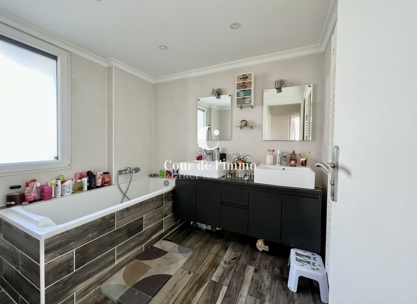 MONNETIER-MORNEX (74560), au sein d'une petite copropriété, appartement 3 pièces en rez-de-jardin de 80,47m2 Loi Carrez, comprenant : une entrée avec placard, une belle pièce à vivre avec cuisine équipée ouverte sur le salon et accès direct à la terrasse et au jardin, espace buanderie, 2 chambres, un bureau, une salle de bain avec double vasque et WC. Belle terrasse de 10m² et 105m² de jardin privatif (+110m² environ de droit de jouissance du terrain accolé). Places de parking libres à proximité de l'appartement.