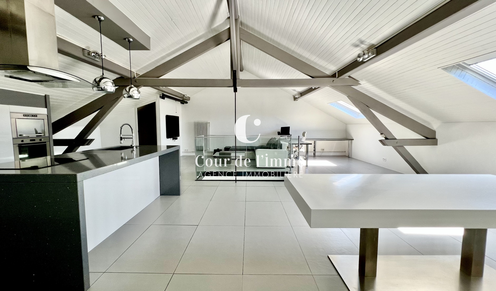 En exclusivité à MONNETIER-MORNEX, au sein d'une petite copropriété de 3 lots (bâtisse en pierre), venez découvrir ce bel appartement en duplex, 4 pièces, de 160² utiles (140m² Loi Carrez), aux volumes biens orchestrés. Le bien a été entièrement rénové avec des matériaux de qualité : belle pièce à vivre avec grande cuisine équipée ouverte sur le séjour (charpente apparente), grand dégagement avec accès au balcon, suite parentale avec dressing et salle d'eau (double douche à l'italienne, double vasque et WC), 2 chambres, salle de bain avec baignoire balnéothérapie et double vasque, WC séparés.