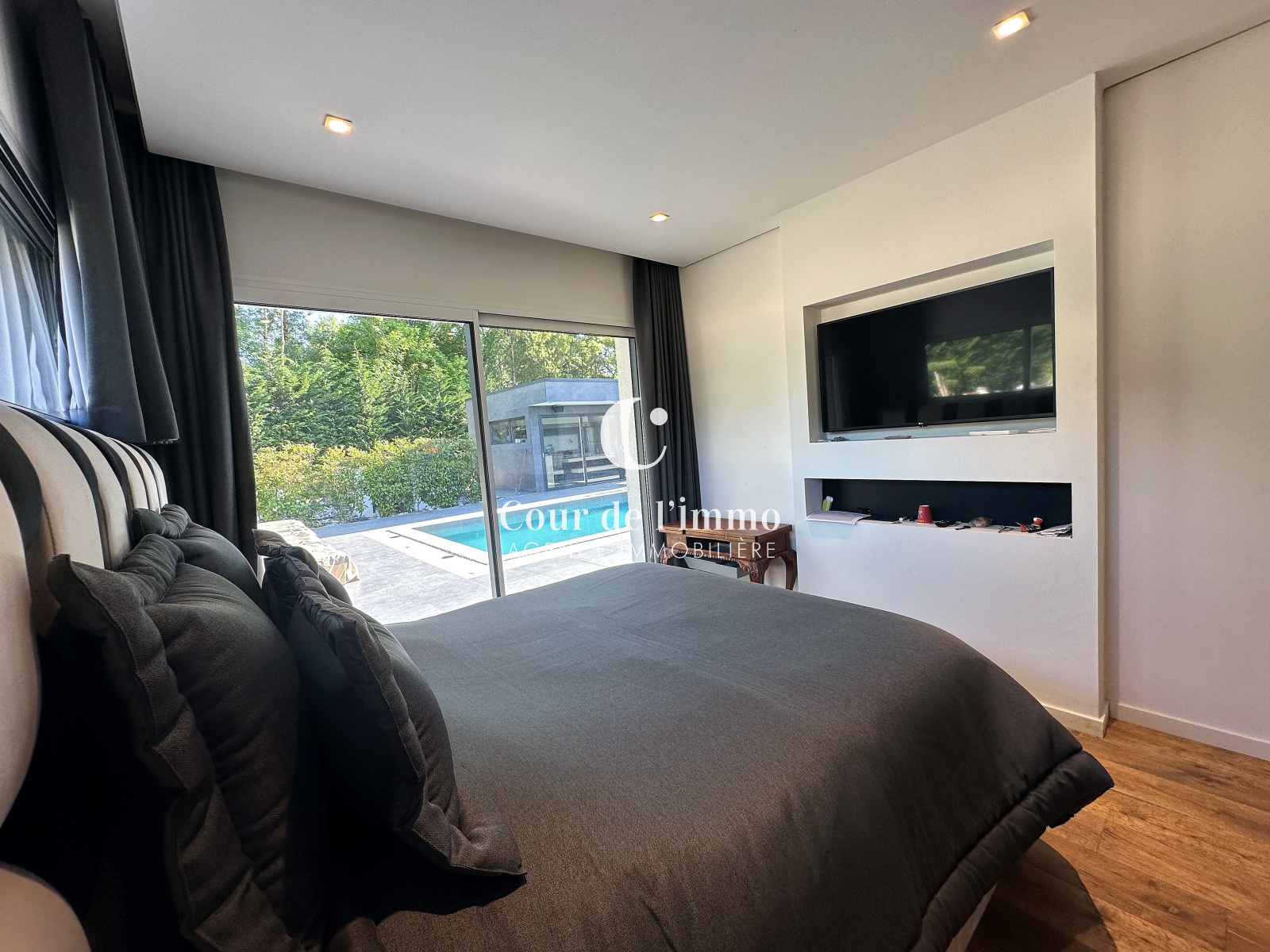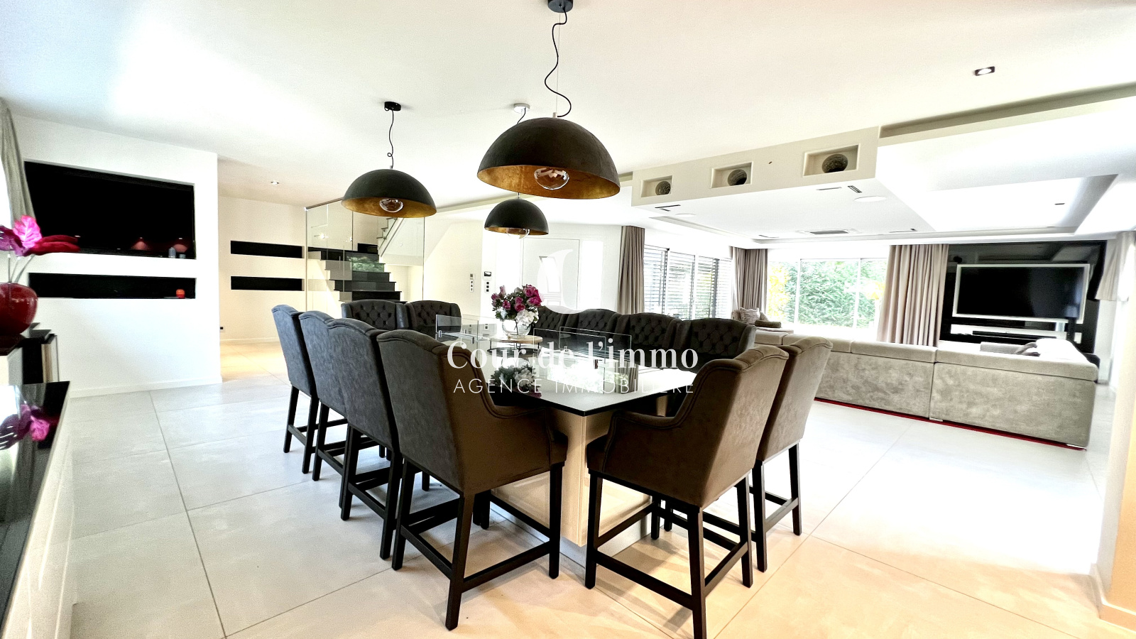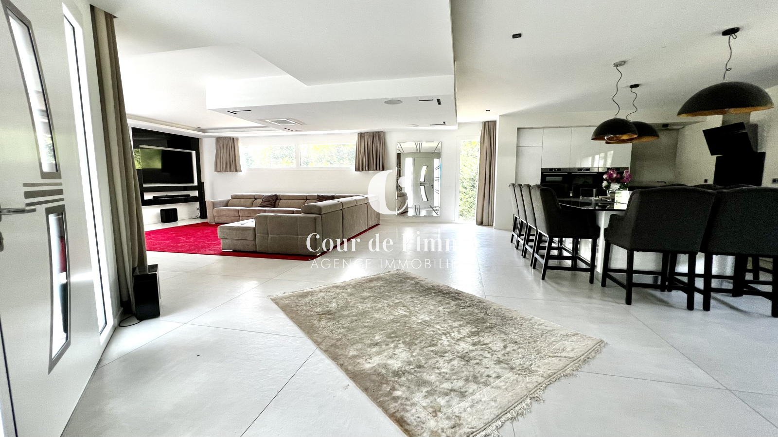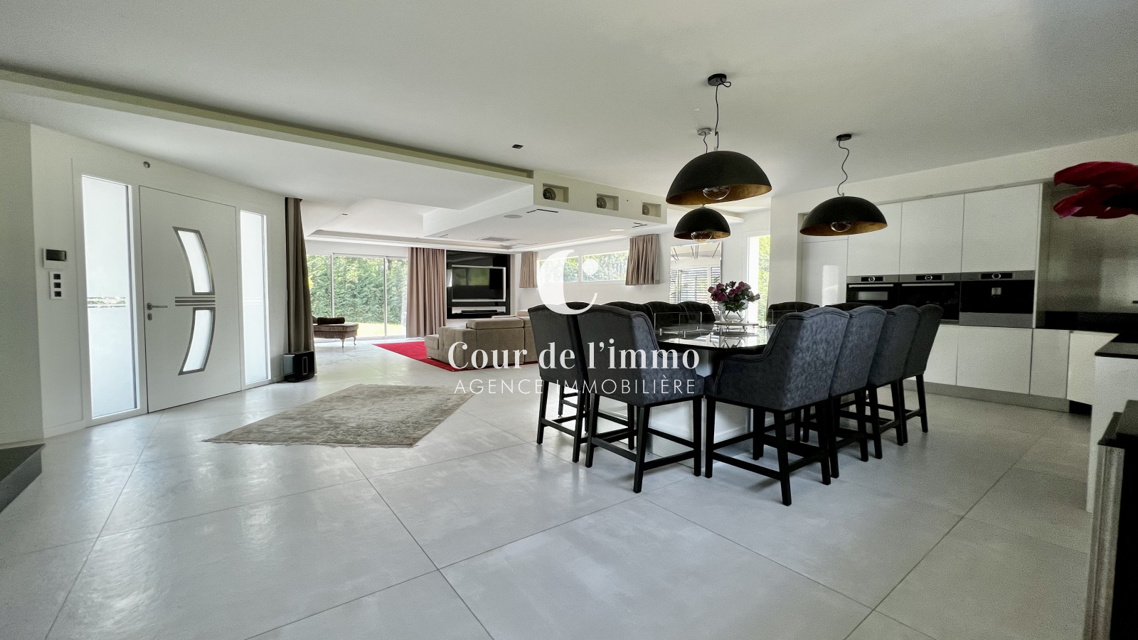 Le tout sur un terrain clôturé et arboré de 3725m² en zone UH du PLU en vigueur avec terrasse, piscine et pool house (cuisine équipée professionnelle - four à pizza). Prestations de qualité (marbre, granit, système boose, etc.)