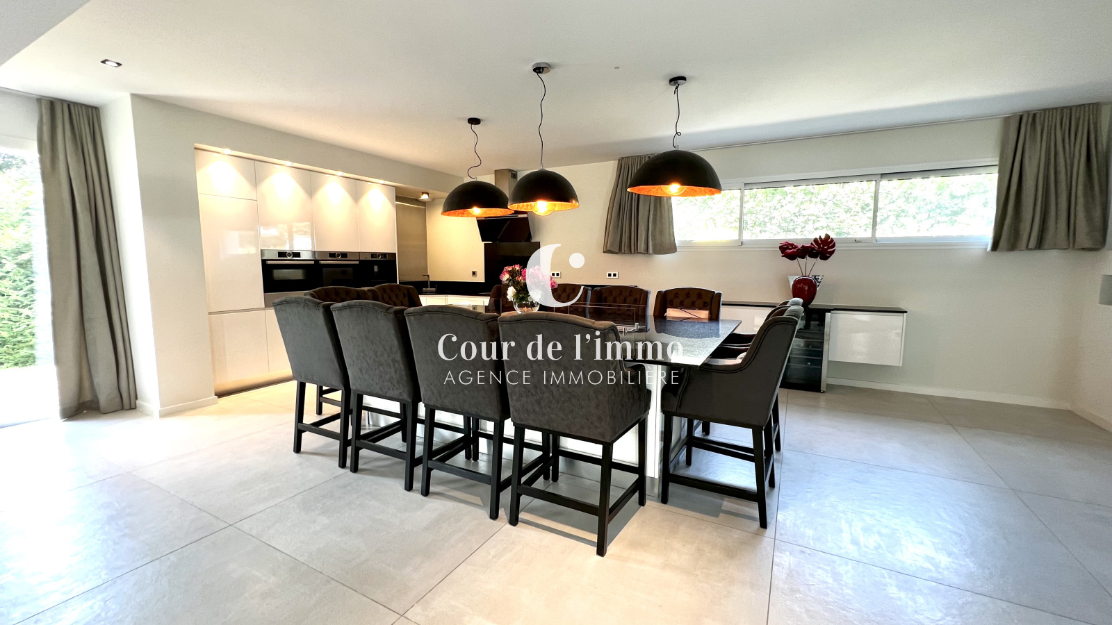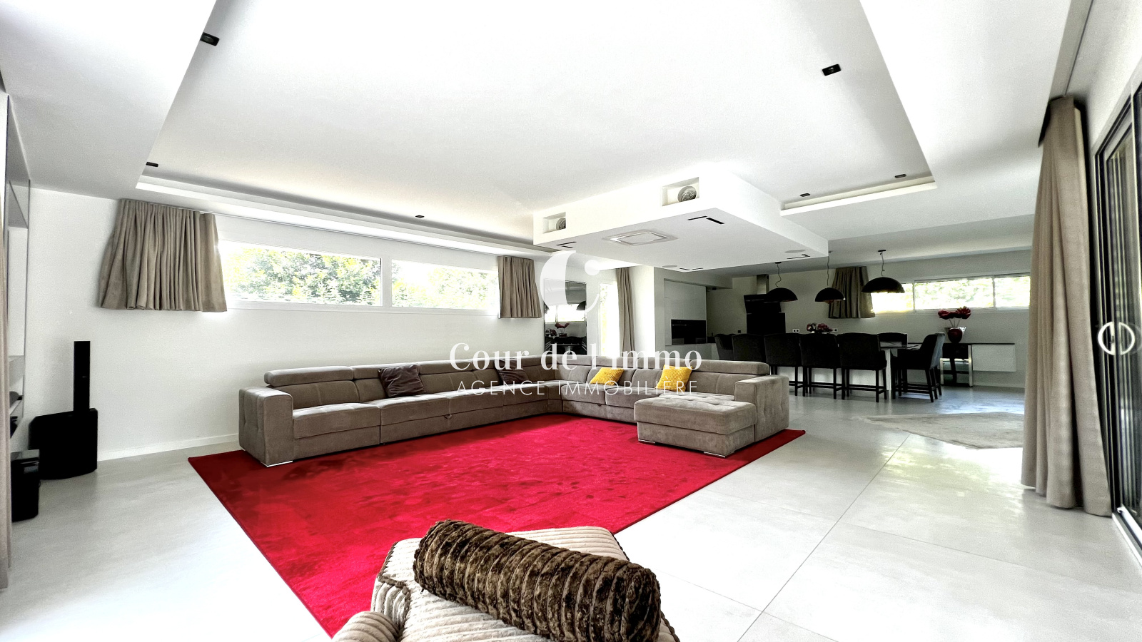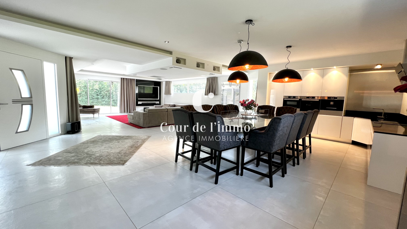 Le tout sur un terrain clôturé et arboré de 3725m² en zone UH du PLU en vigueur avec terrasse, piscine et pool house (cuisine équipée professionnelle - four à pizza). Prestations de qualité (marbre, granit, système boose, etc.)