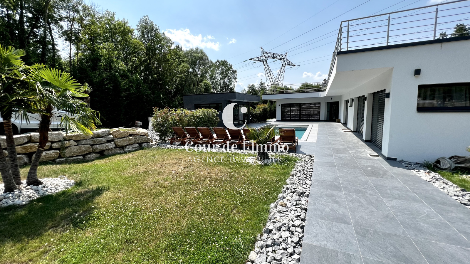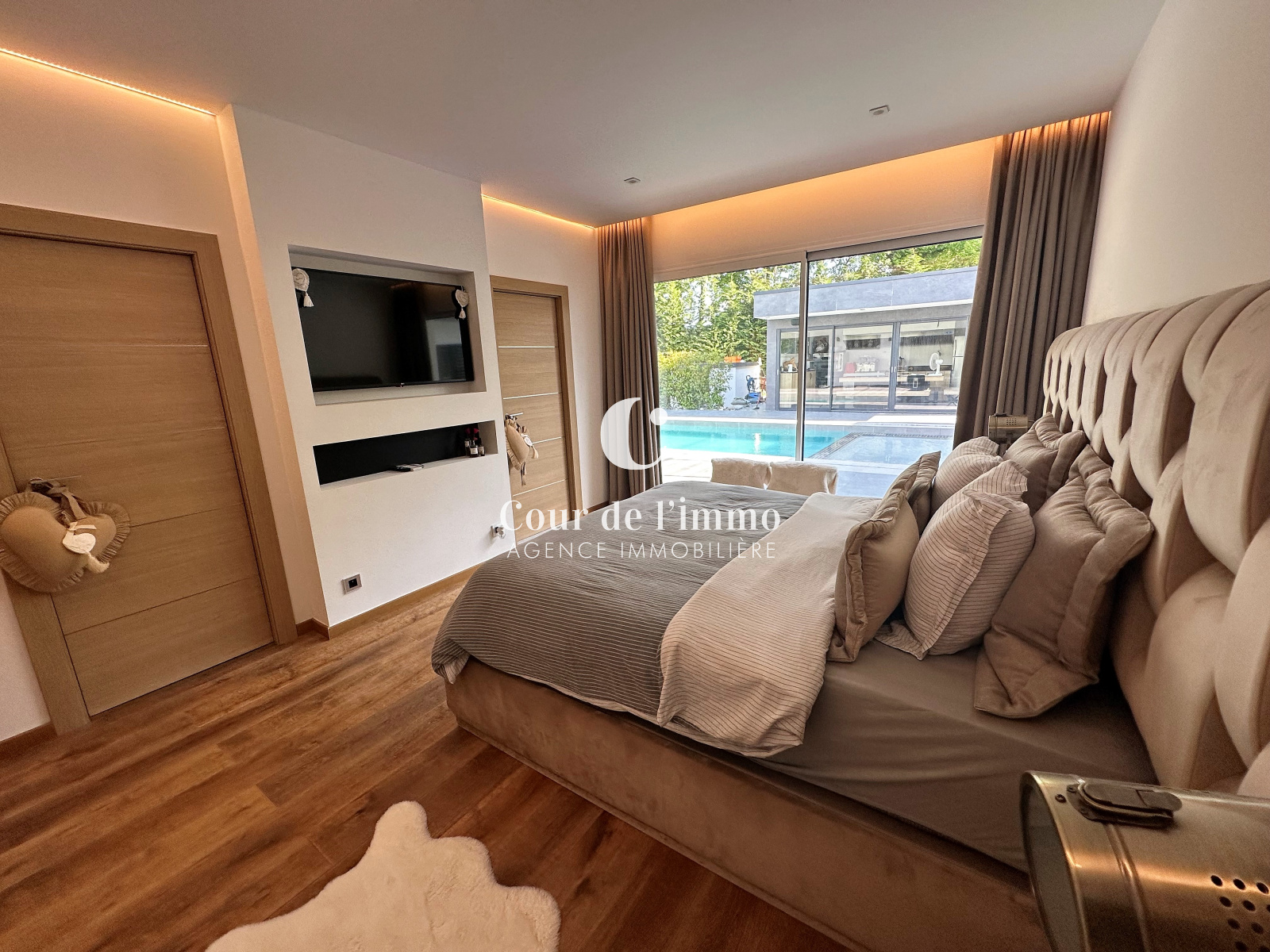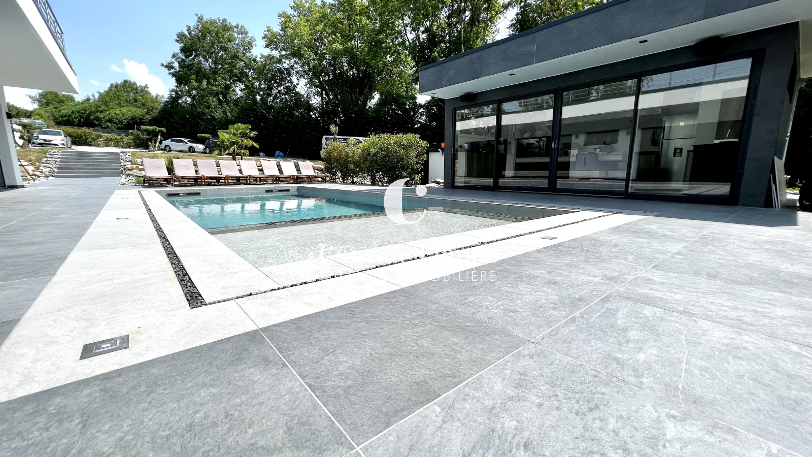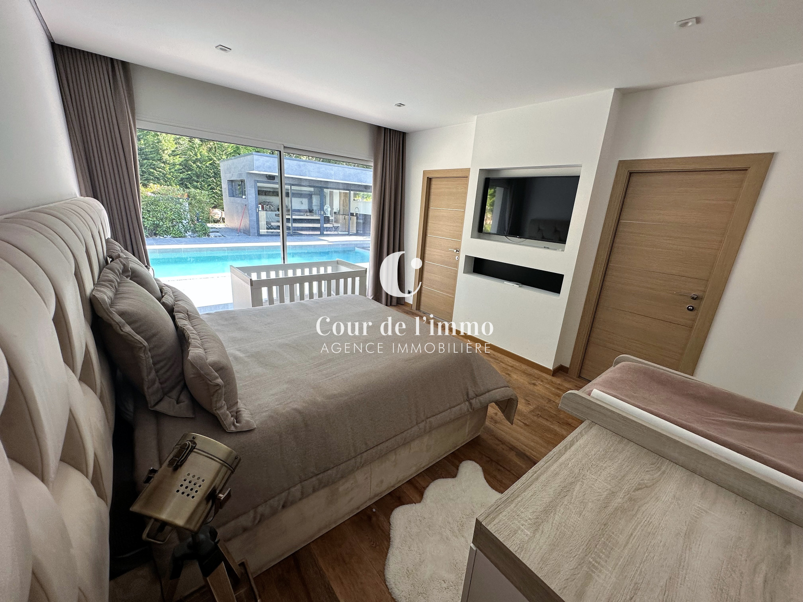 Le tout sur un terrain clôturé et arboré de 3725m² en zone UH du PLU en vigueur avec terrasse, piscine et pool house (cuisine équipée professionnelle - four à pizza). Prestations de qualité (marbre, granit, système boose, etc.)