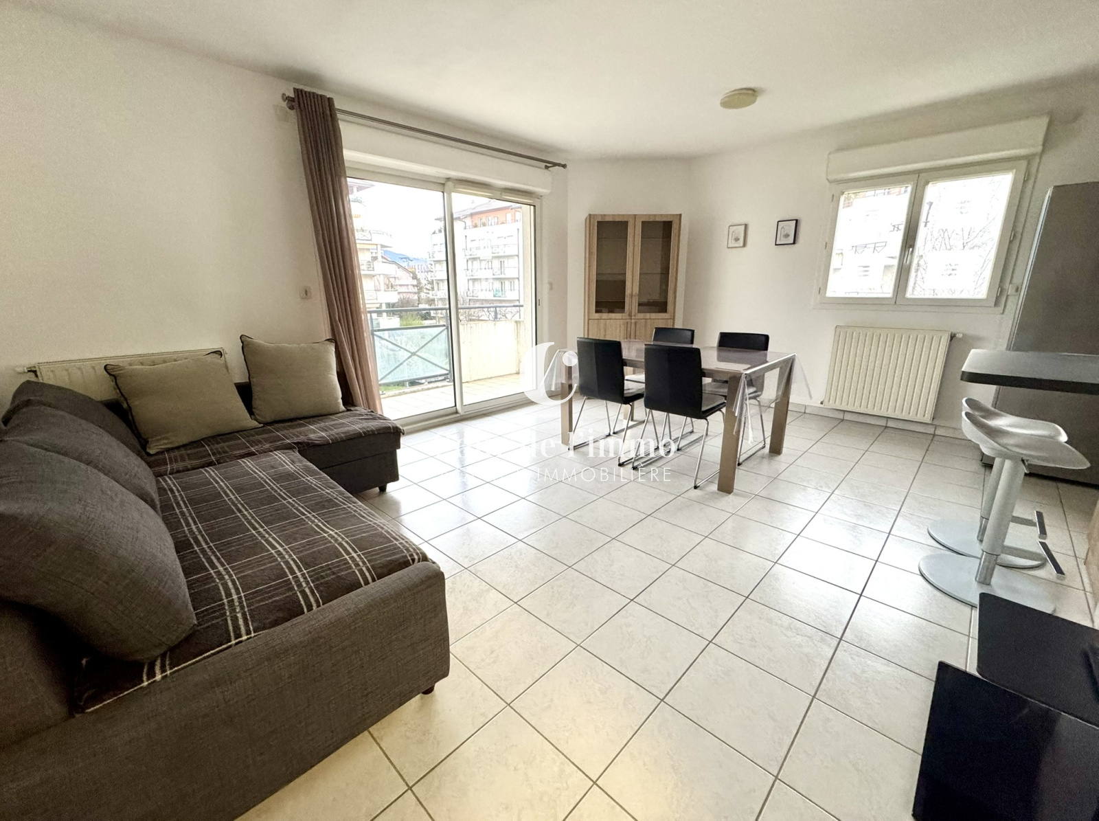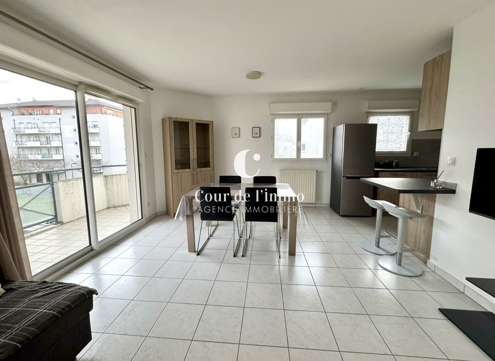 En exclusivité, sur la commune d'AMBILLY, au 2ème étage d'une résidence sécurisée, appartement Type 2 de 47.80m² habitables comprenant : entrée avec placard, cuisine équipée ouverte sur la pièce à vivre avec accès à un grand balcon, une chambre avec placards, salle de bain et WC séparé.