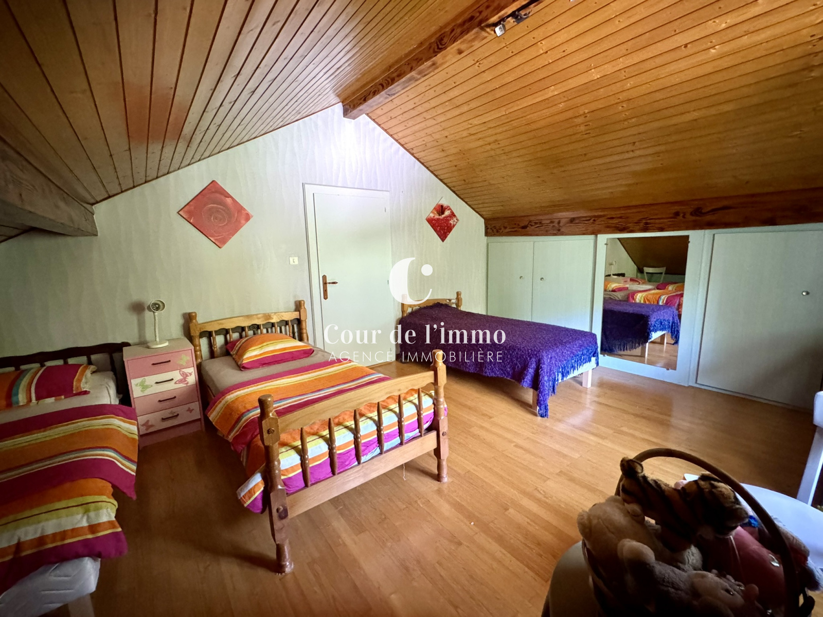 A l'étage : un appartement avec un accès indépendant, comprenant une entrée, une pièce à vivre avec cuisine, 2 grandes chambres et une salle d'eau avec WC (possibilité de réunir l'appartement à la maison pour avoir qu'une seule habitation).