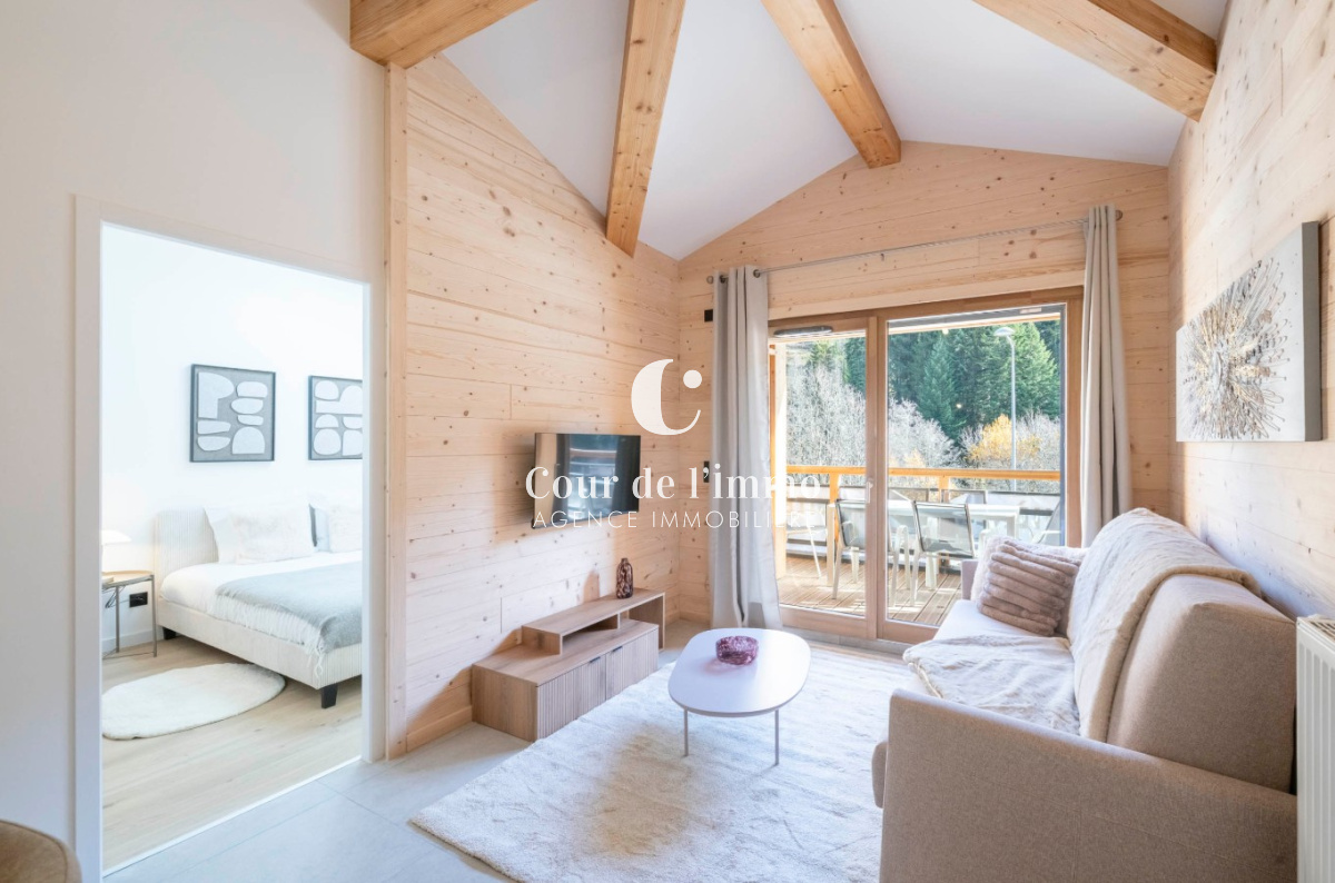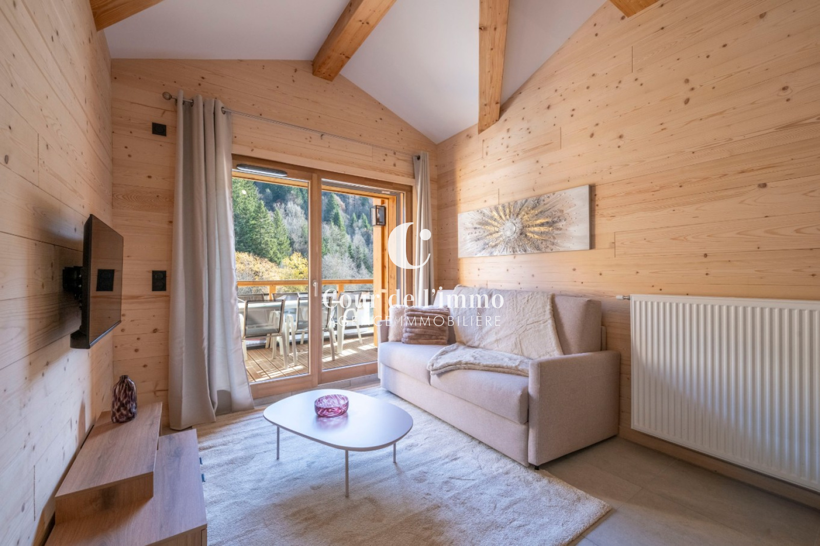 Idéalement située à l'entrée du village des Gets, venez découvrir cet appartement T3 de 68.91 m² au 2ème étage d'une résidence récente qui profite d'un emplacement donnant un accès à pied aux pistes (télésiège des Perrières Express).