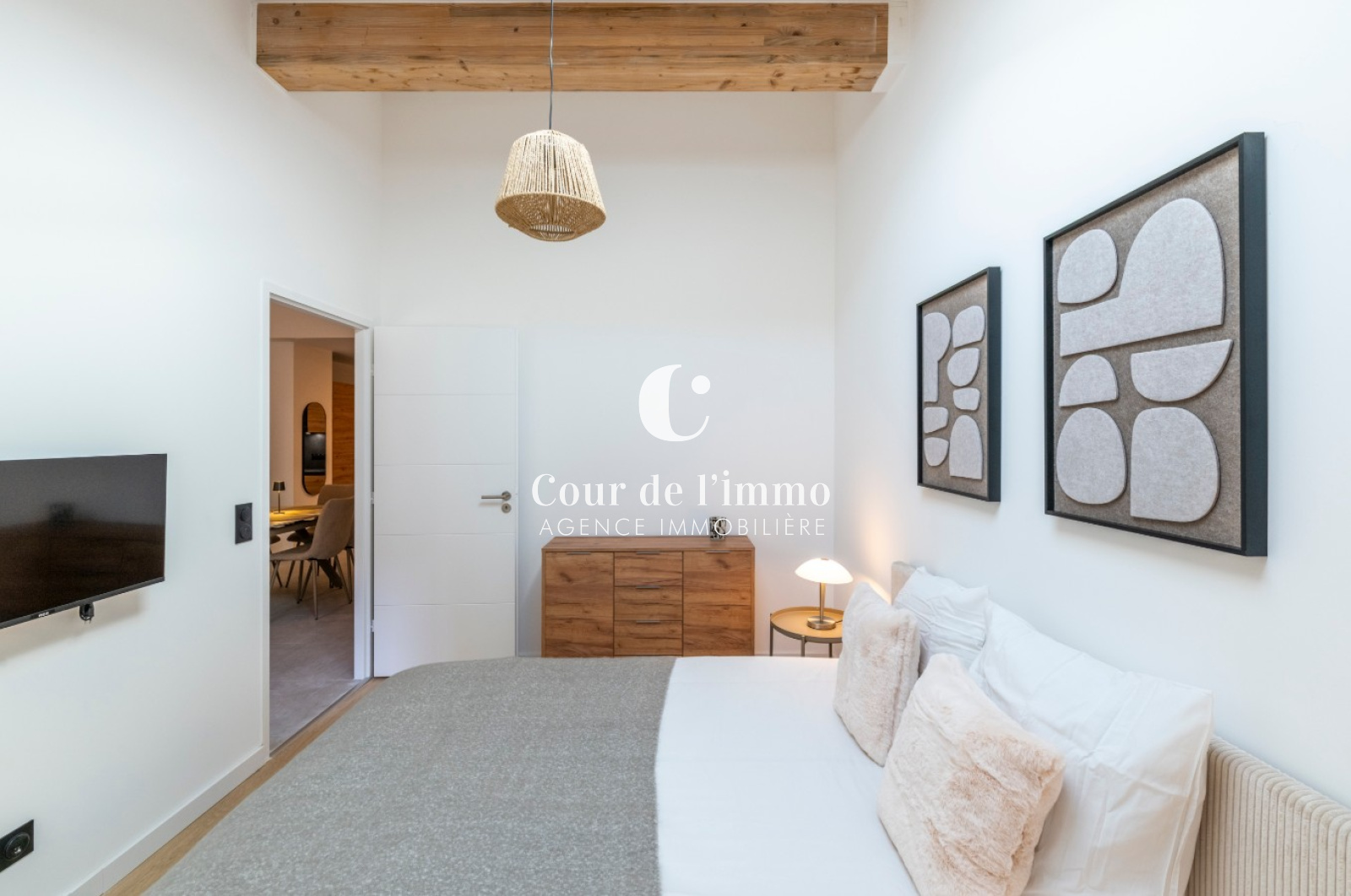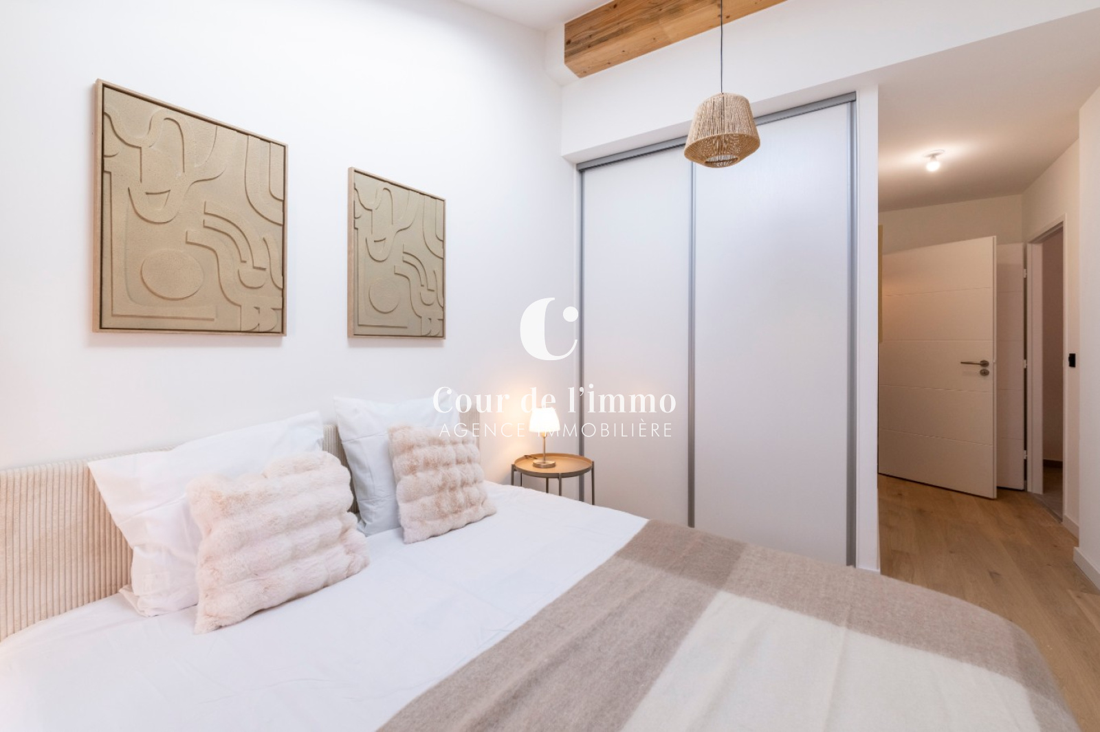 L'appartement est composée d'une cuisine entièrement équipée, ouverte sur la pièce de vie lumineuse offrant un accès à un balcon de 6.91 m² (SUD).