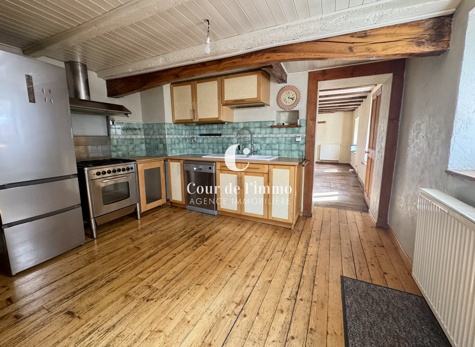 Située à FILLINGES (74250) secteur Mijouet, authentique maison de village de 98m² habitables et 155m² utiles environ, avec 80m² de combles à aménager. Le bien comprend, au rez-de-chaussée supérieur : une cuisine équipée, un salon / séjour avec poêle à bois, une chambre avec placards, une salle de bain et WC séparé. Au rez-de-chaussée inférieur : une chaufferie / buanderie, une chambre, une pièce supplémentaire, une cave à vin, une cave et un atelier. Un garage et une partie combles de 80m² au sol complètent ce bien (agrandissement / rénovation des combles possible afin d'agrandir la partie habitable) .