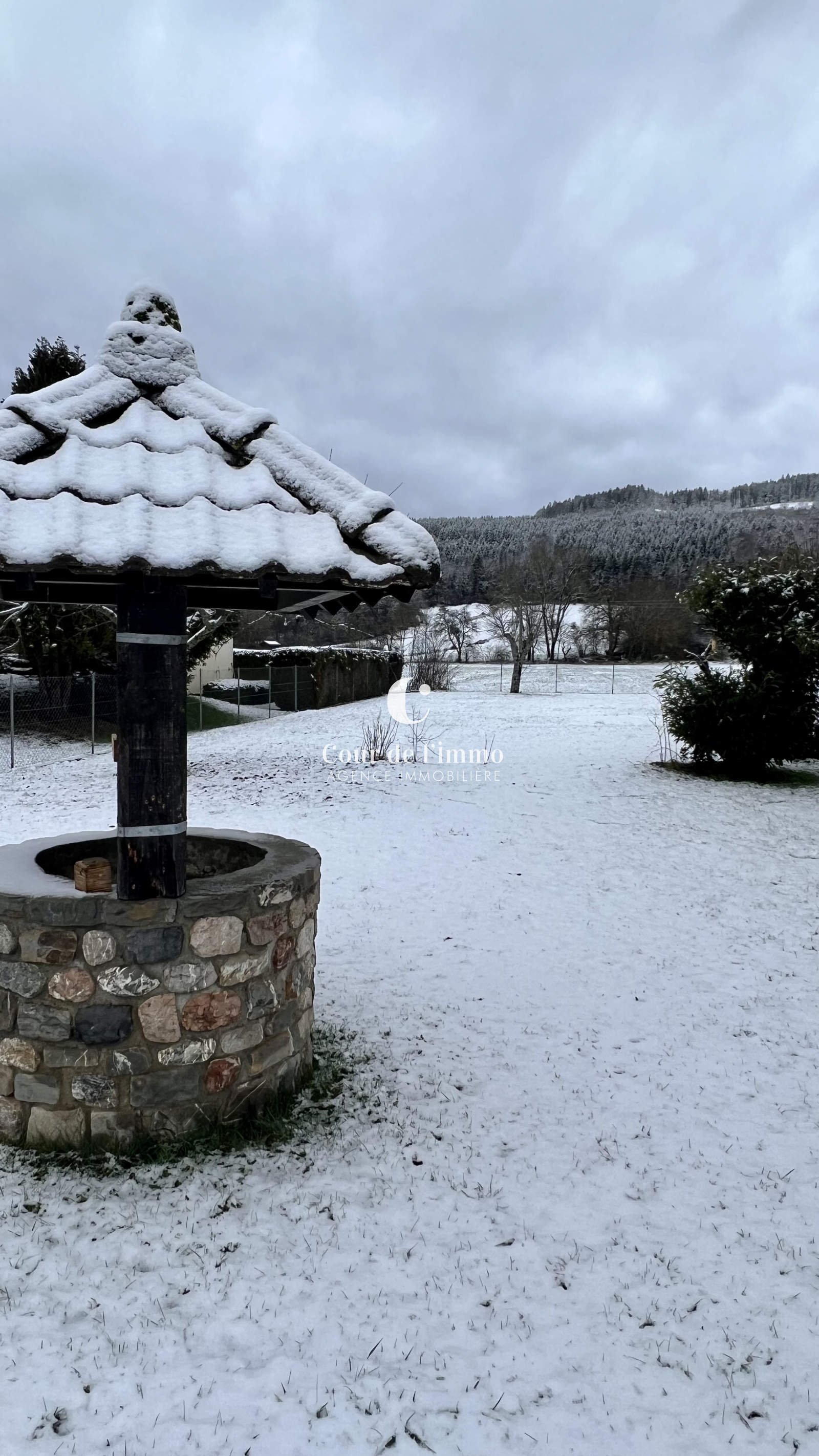 A l'étage : hall d'entrée, cuisine séparée, salon/séjour avec insert bois et accès à la terrasse, trois grandes chambres, salle d'eau et WC séparé.