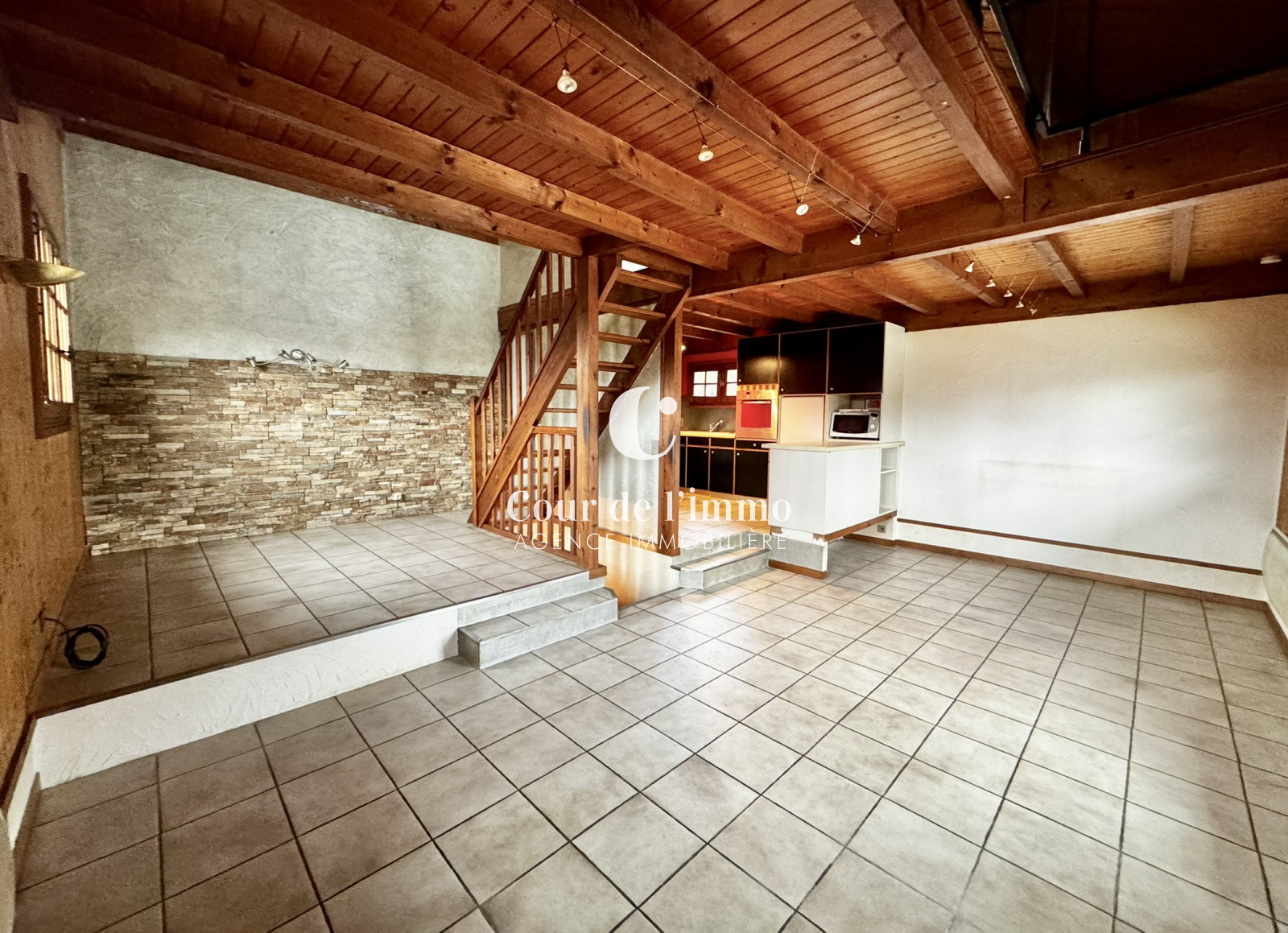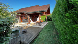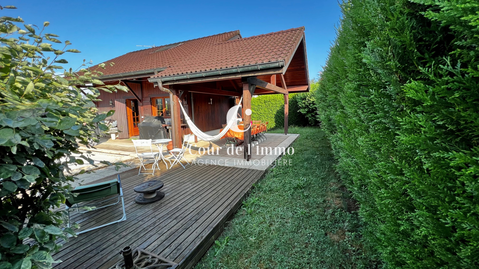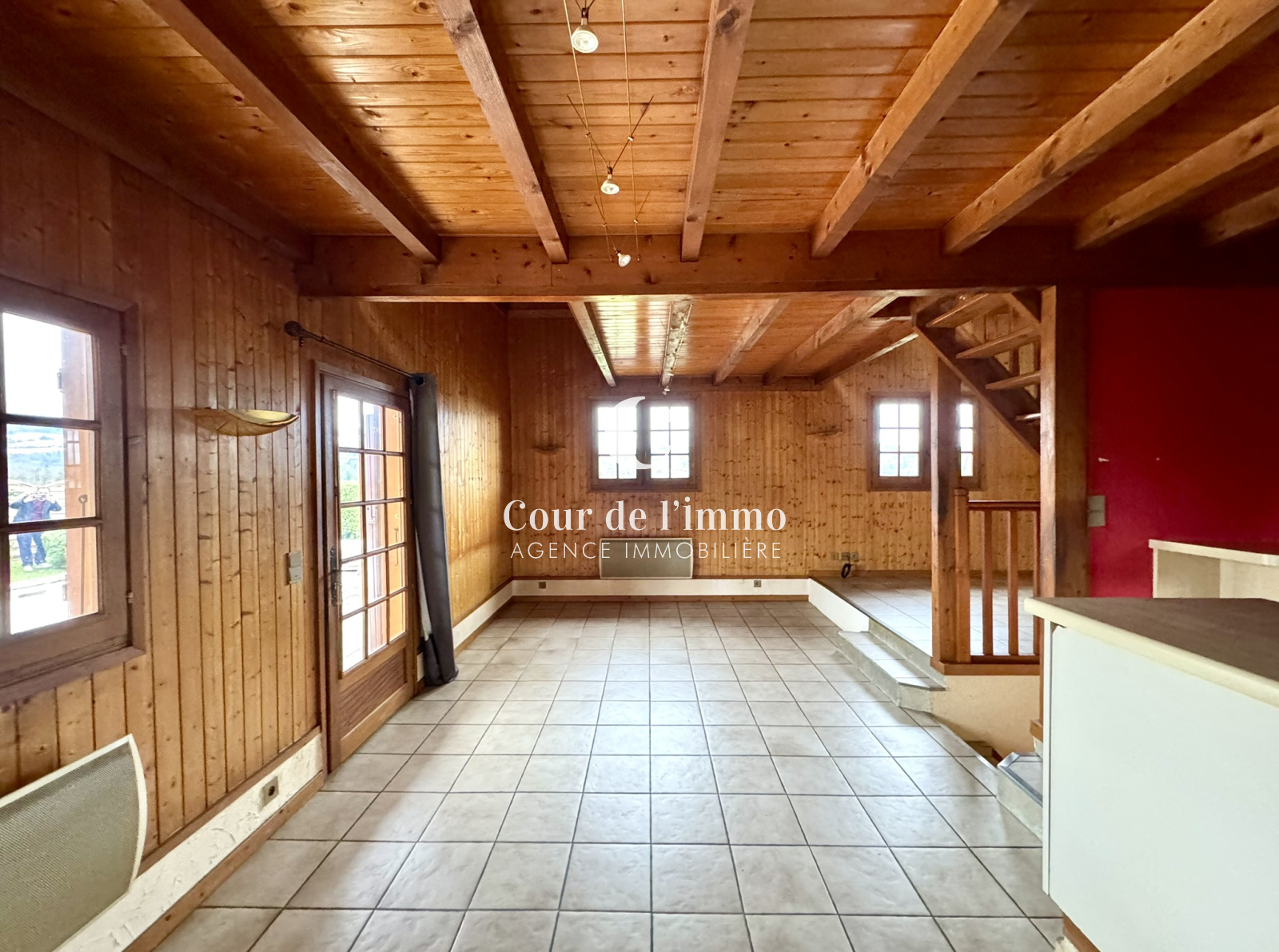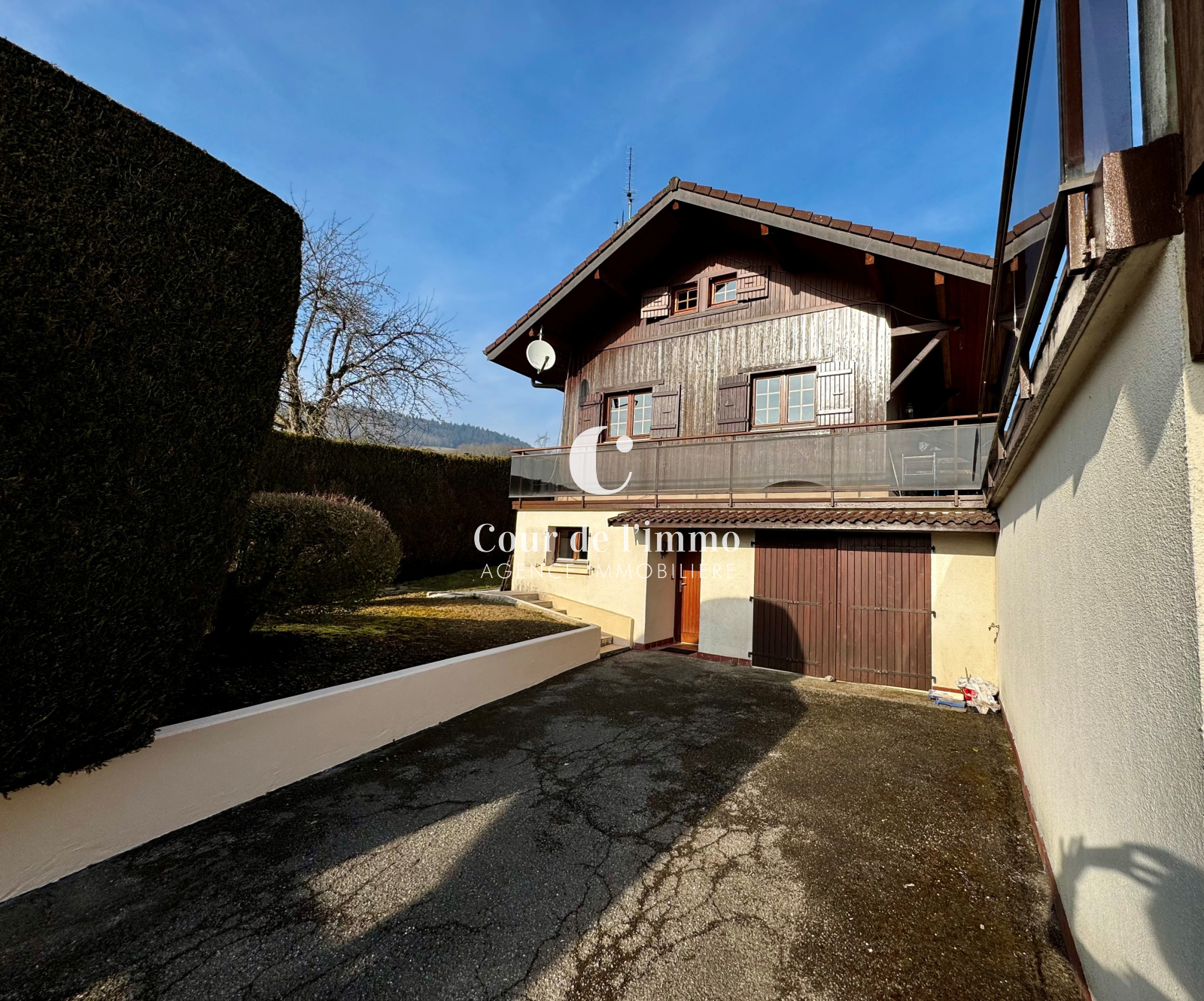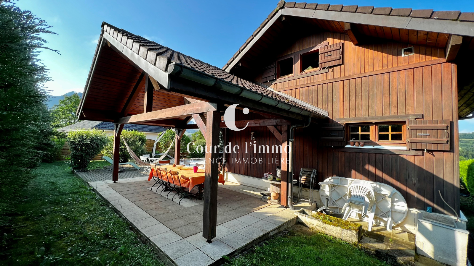 Situé à VIUZ-EN-SALLAZ, venez découvrir ce chalet individuel 3 pièces de 102,53m² habitables, sur un terrain de 803m², comprenant : une pièce à vivre avec cuisine ouverte sur le séjour et accès à la terrasse (dont une partie abritée) avec piscine, un WC, et une mezzanine (possibilité d'une 3ème chambre). En rez-de-cour : 2 chambres, une salle de bain, une pièce de rangement et accès au garage. Un abris voiture complète le bien.