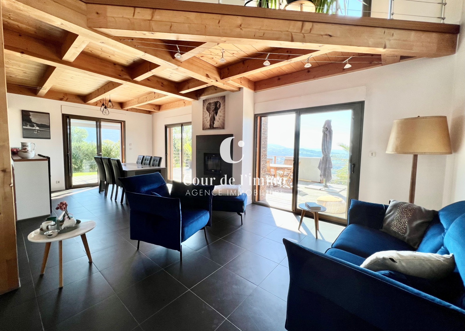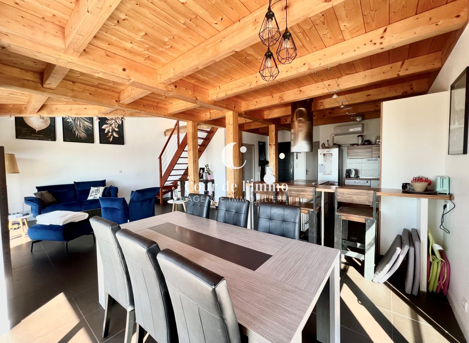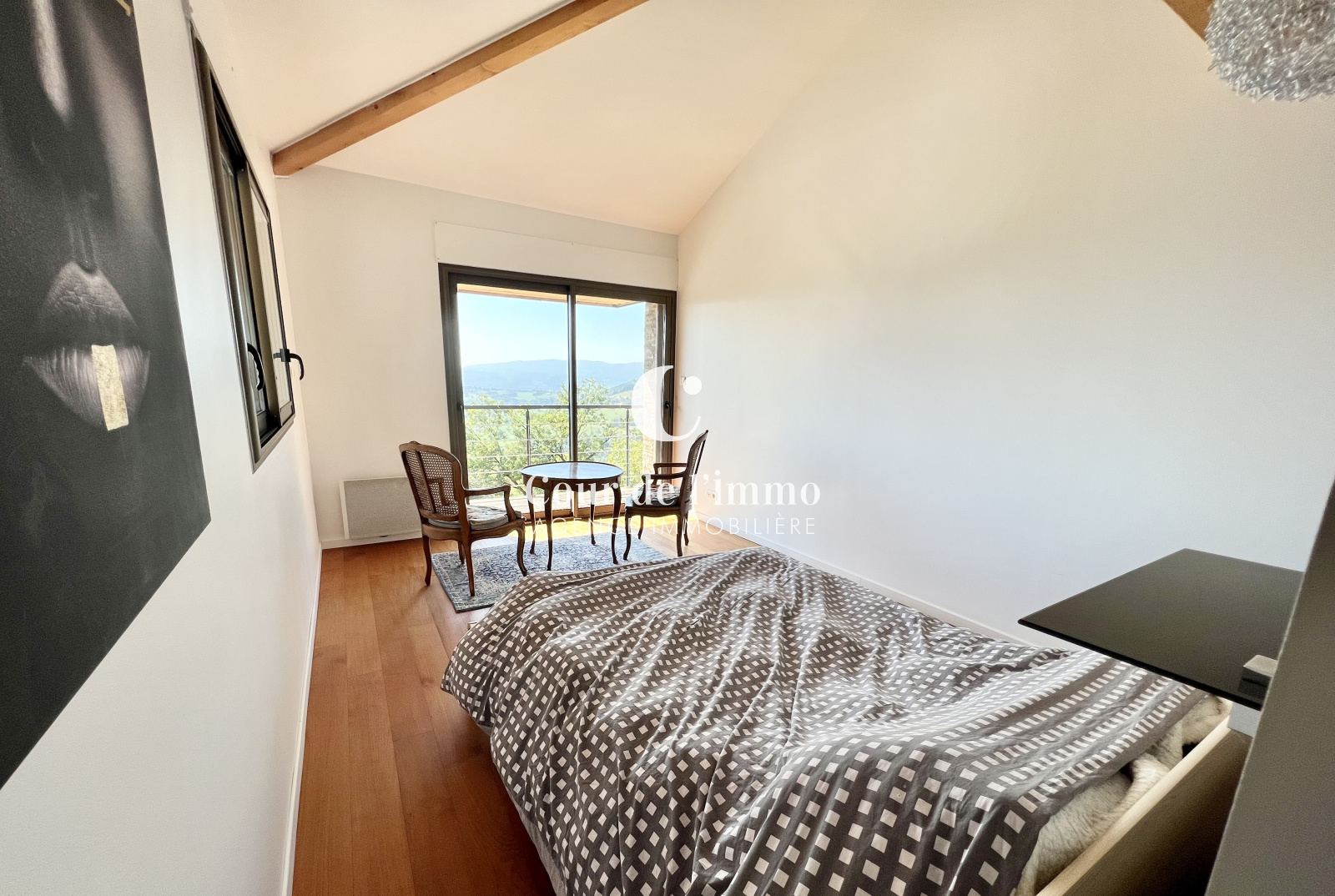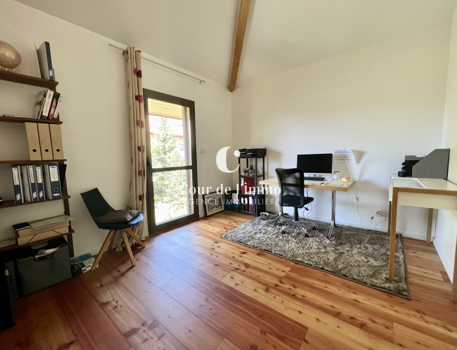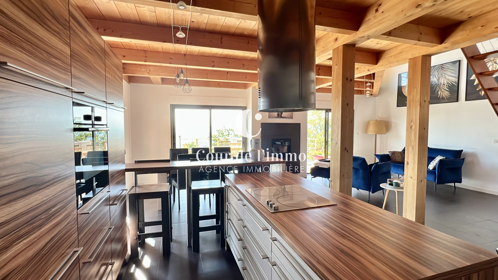 A l'étage : mezzanine, 2 chambres dont une suite parentale avec salle de bain (double vasque, douche et baignoire, accès au balcon et au toit-terrasse), wc avec lave-main complète l'étage.