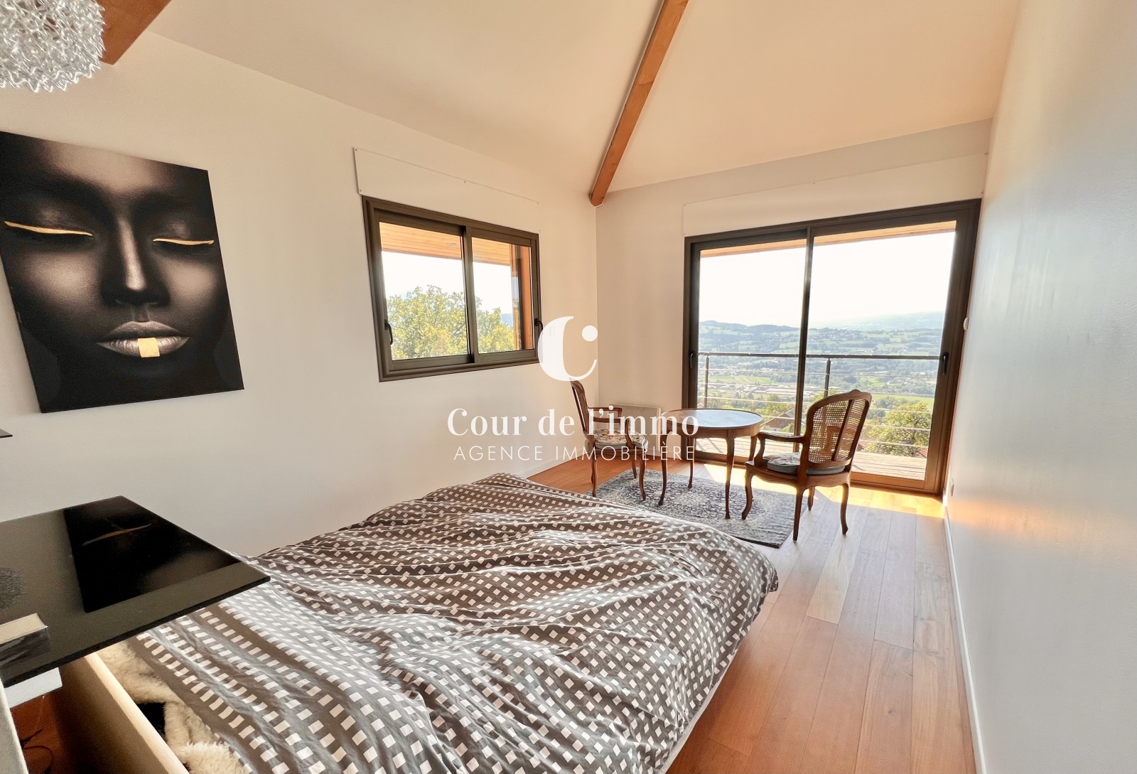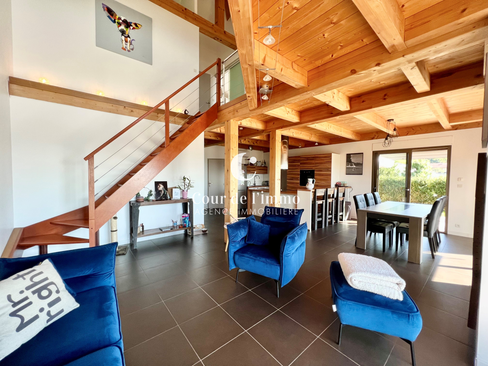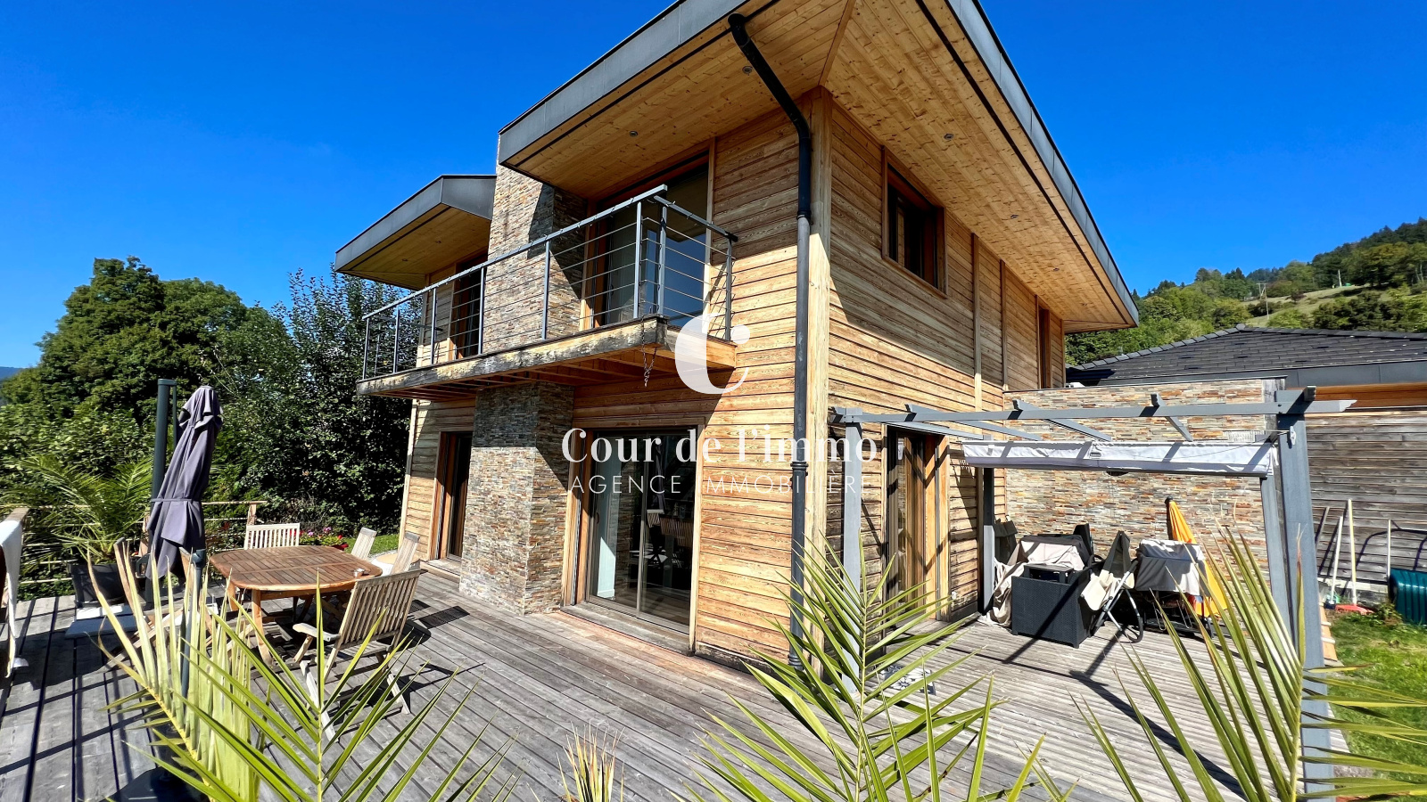 En exclusivité à VIUZ-EN-SALLAZ, venez découvrir cette maison en ossature bois de 4 pièces, 122m² habitables et 160m² utiles environ, comprenant au rez-de-chaussée : une entrée desservant une grande pièce à vivre avec cuisine équipée ouverte sur le séjour et accès à une grande terrasse (57m² environ), chambre, salle d'eau avec WC, buanderie avec accès direct au garage double.