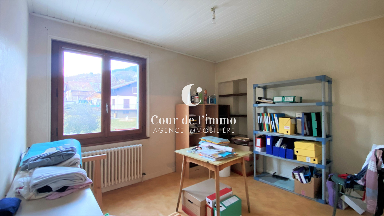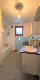 VIUZ-EN-SALLAZ, maison individuelle 5 pièces de 115m² habitables et 220m² utiles environ, sur un terrain de 635m², comprenant en rez-de-chaussée surélevé : hall d'entrée, grande cuisine équipée, pièce à vivre avec salon / salle-à-manger et accès au balcon / terrasse, chambre avec salle d'eau et WC.