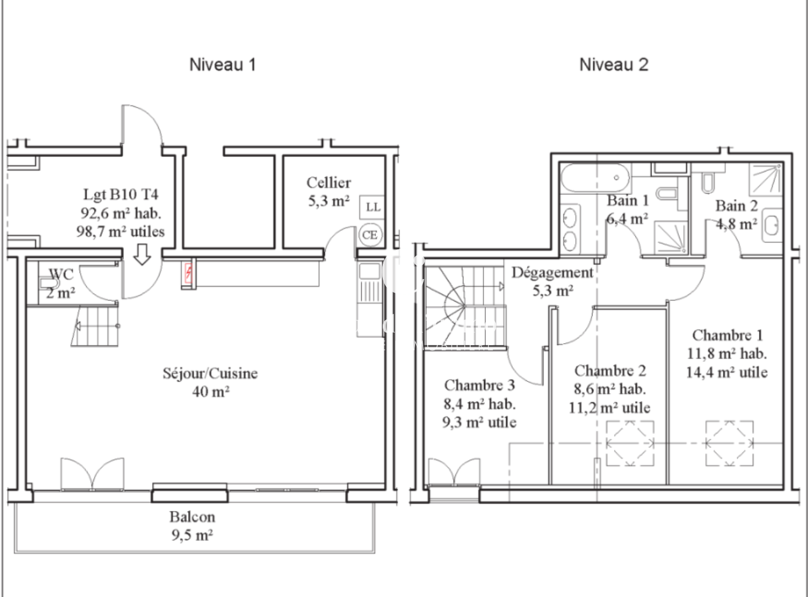Appartement 4 pièce(s) 3 chambre(s) 95.3 m²