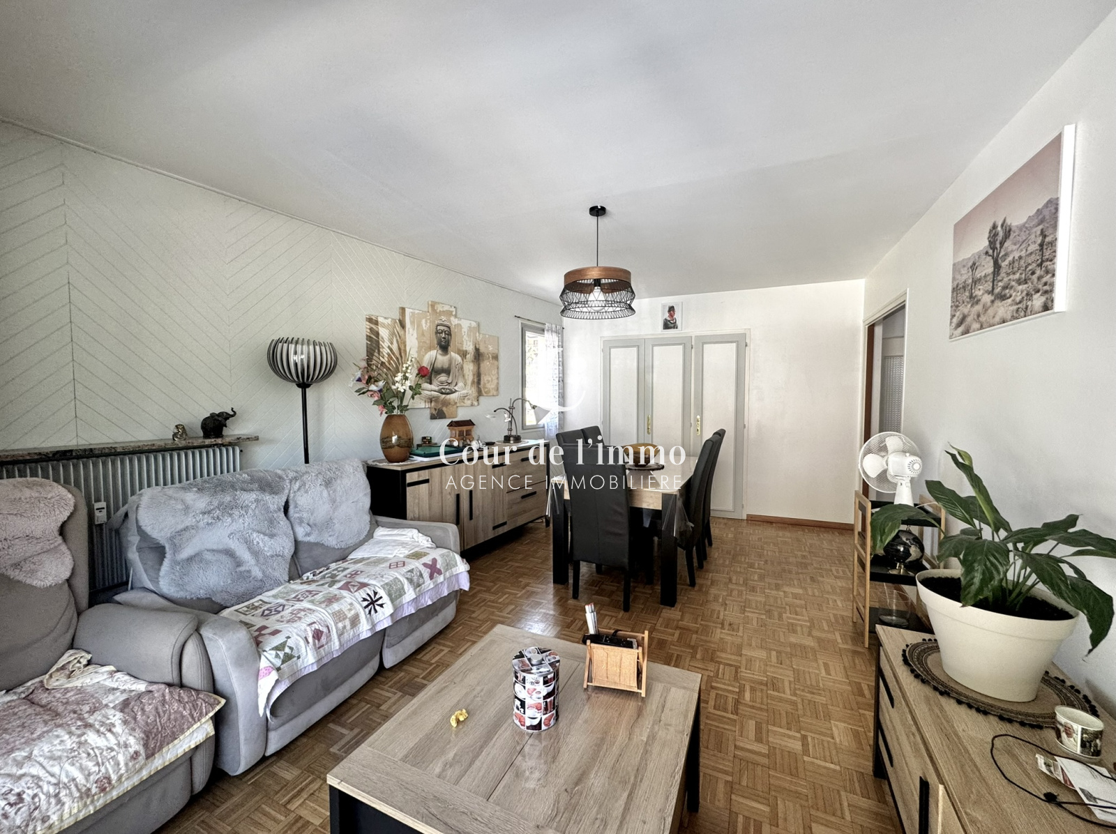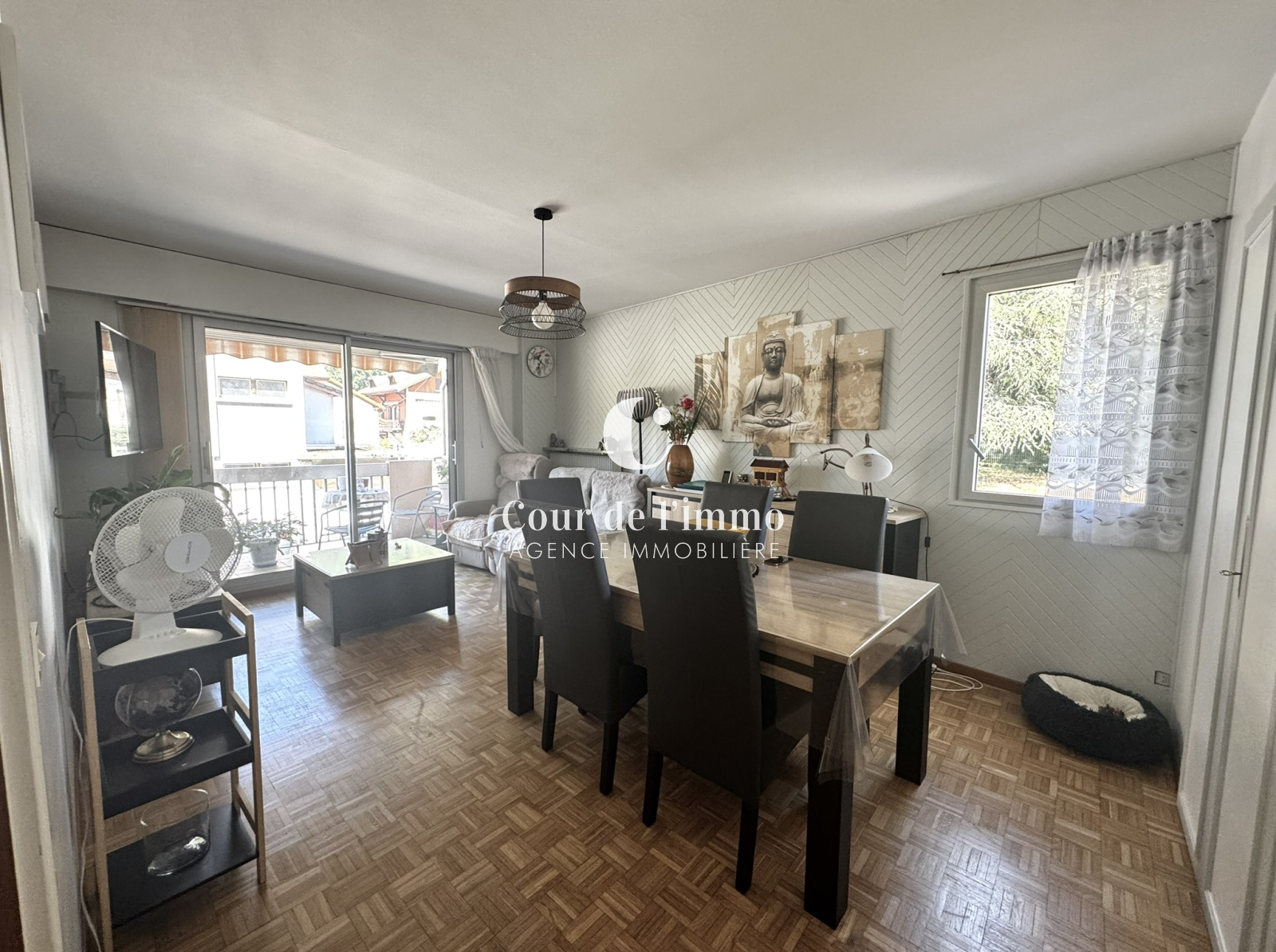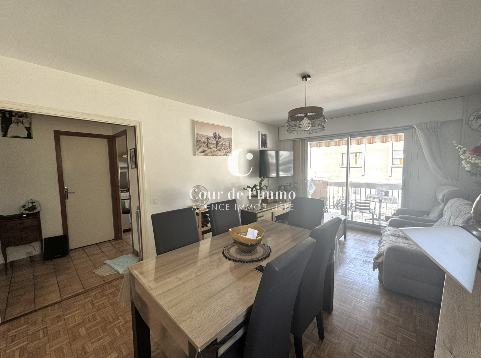 - Entrée avec placard desservant sur un salon / salle à manger avec accès au balcon, cuisine séparée équipée.