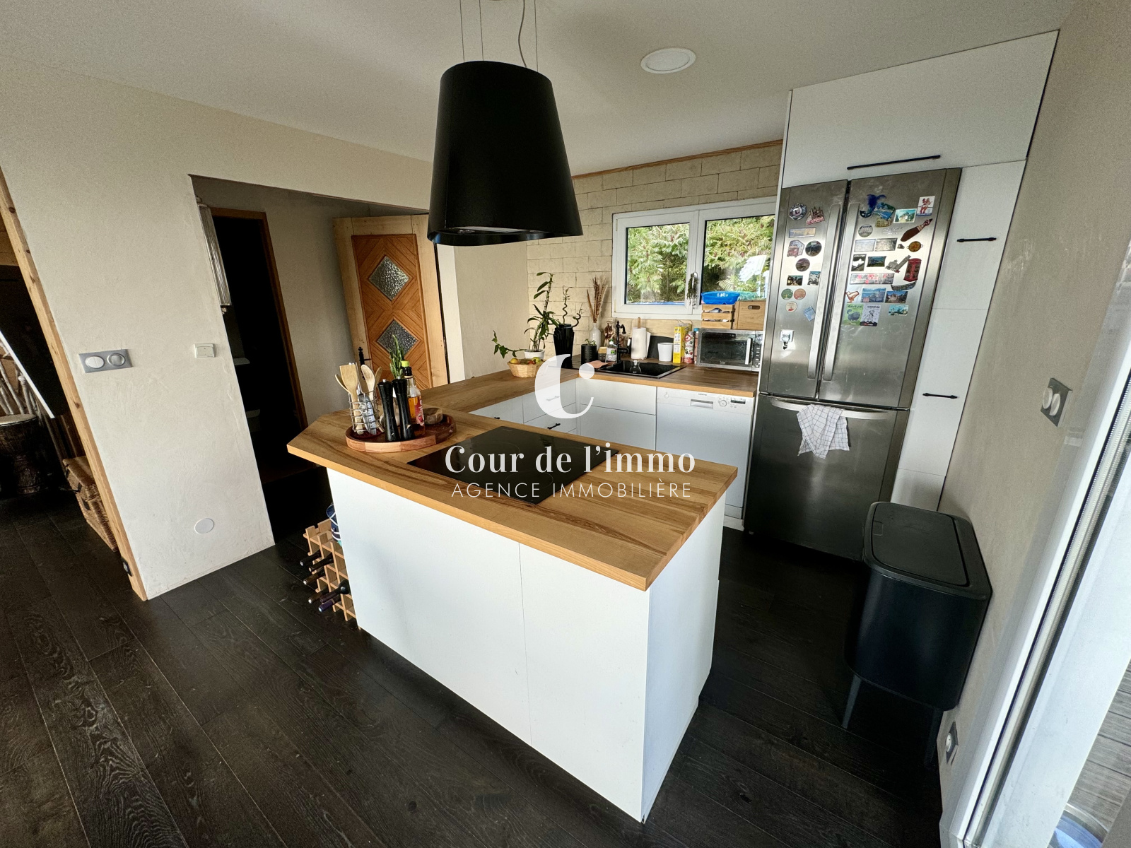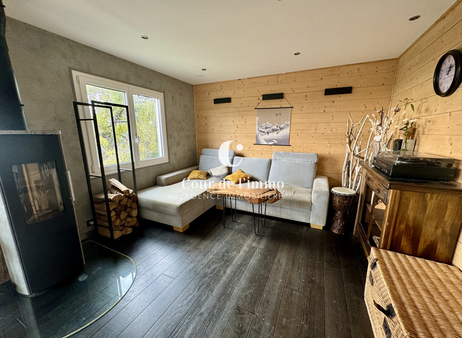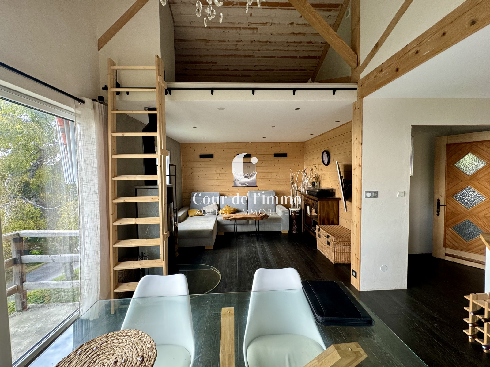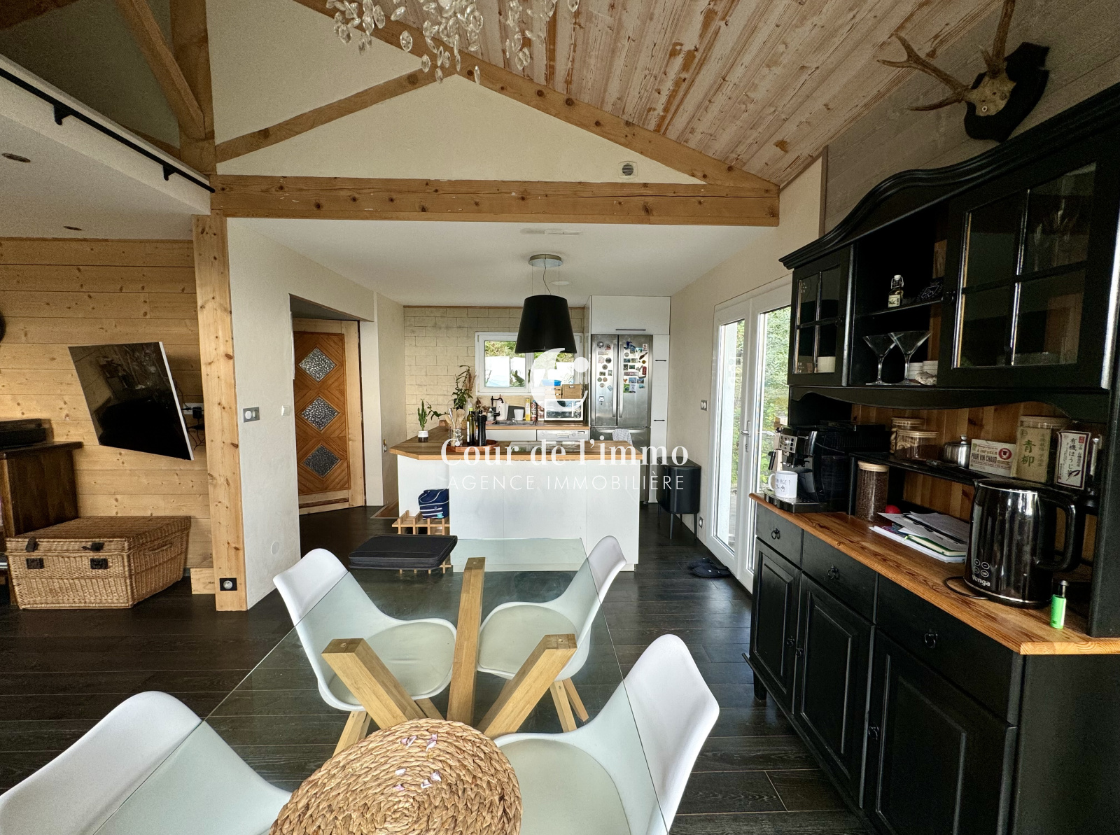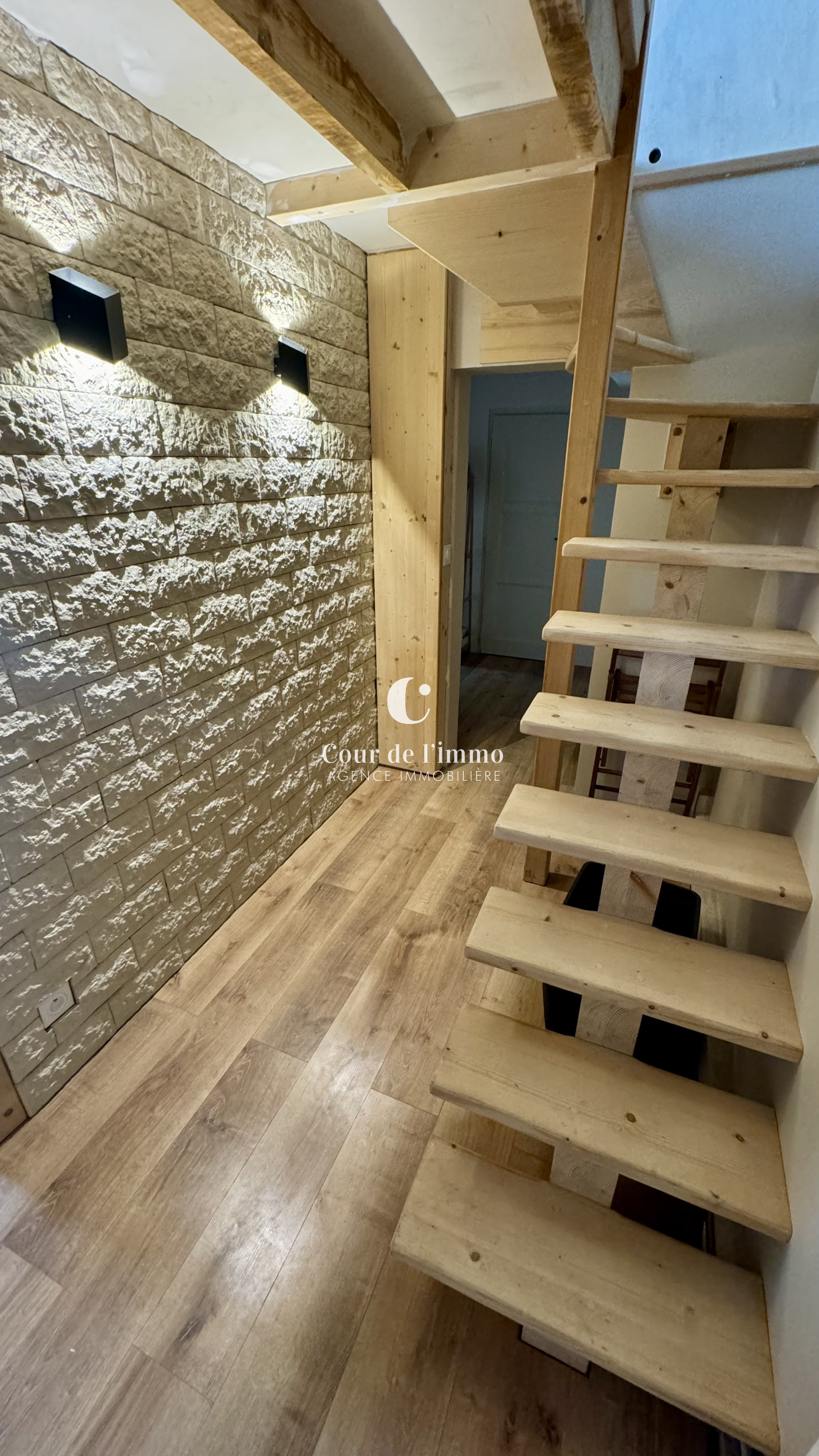 Chalet individuel de 80m² habitables et 102m² utiles environ, rénové avec des matériaux de qualité, sur un terrain de 949m² (en zone UC). Le chalet comprend une belle pièce à vivre avec cuisine équipée ouverte sur le salon / salle-à-manger et accès au balcon et à la terrasse, mezzanine, salle d'eau avec WC, 2 grandes chambres et une buanderie. DPE : classe énergie E (GES: C).