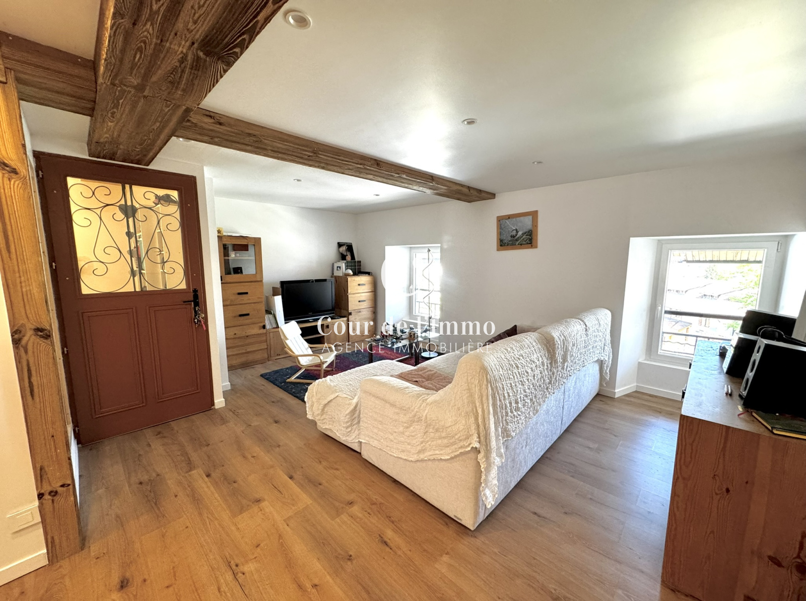 Idéalement situé au centre de BONS-EN-CHABLAIS et proche de toute commodités, au deuxième étage d'une petite copropriété, venez découvrir ce bel appartement T4 en duplex de 89.53m² Loi Carrez et 111.84m² utiles, entièrement rénové et parfaitement entretenu, comprenant : une entrée, une cuisine équipée ouverte sur le séjour, un cellier et un WC avec lave-main. A l'étage : 3 grandes chambres et une salle de bain (avec baignoire, douche italienne et WC).