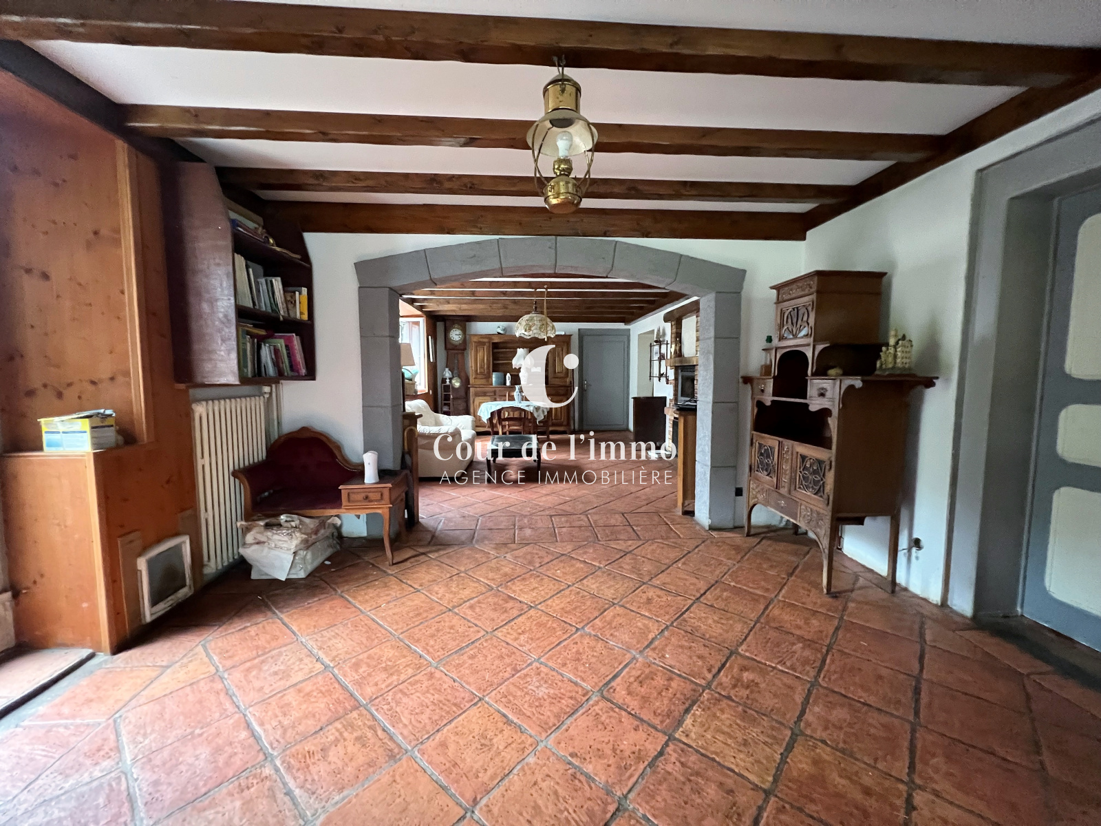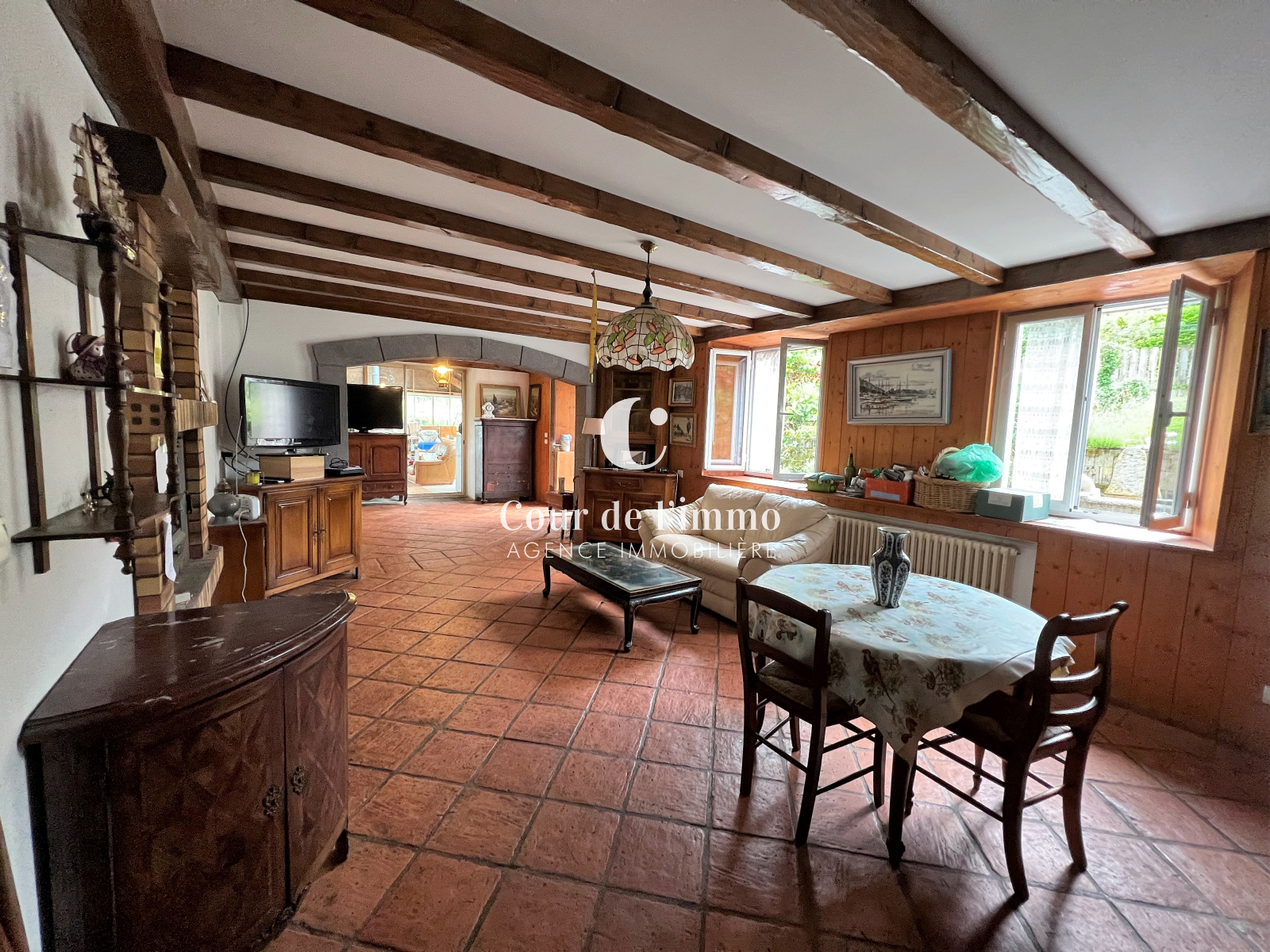 En exclusivité à LA TOUR (74250), authentique corps de ferme avec pierres et poutres apparentes de 166m² habitables et 526m² utiles environs, sur un terrain de 2 992m² (terrain constructible, en zone Uh du PLU en vigueur).