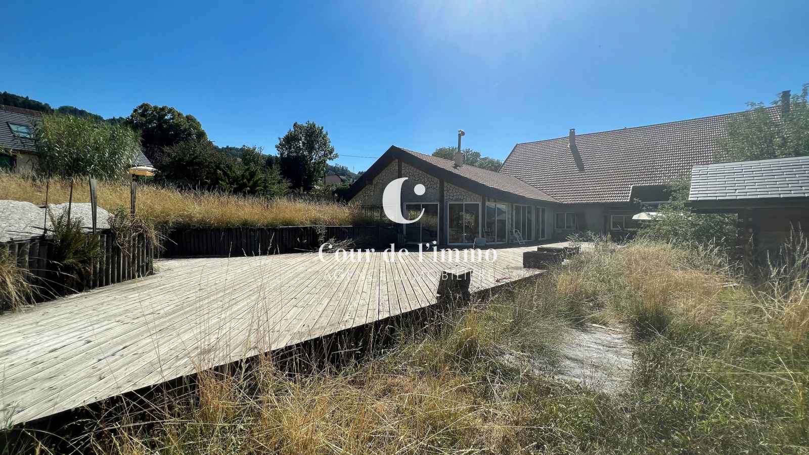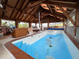 Le Rez-de-chaussée est composé, d'une cuisine équipée, d'un séjour de 40m² avec accès à la première terasse, chambre parentale avec salle de bain privative, 2 chambres, salle de bain avec WC, buanderie et WC séparé. La création d'une extesion offre une pièce supplémentaire de 112m² avec piscine intérieur chauffée et accès à la seconde tersse de 200m² environ.