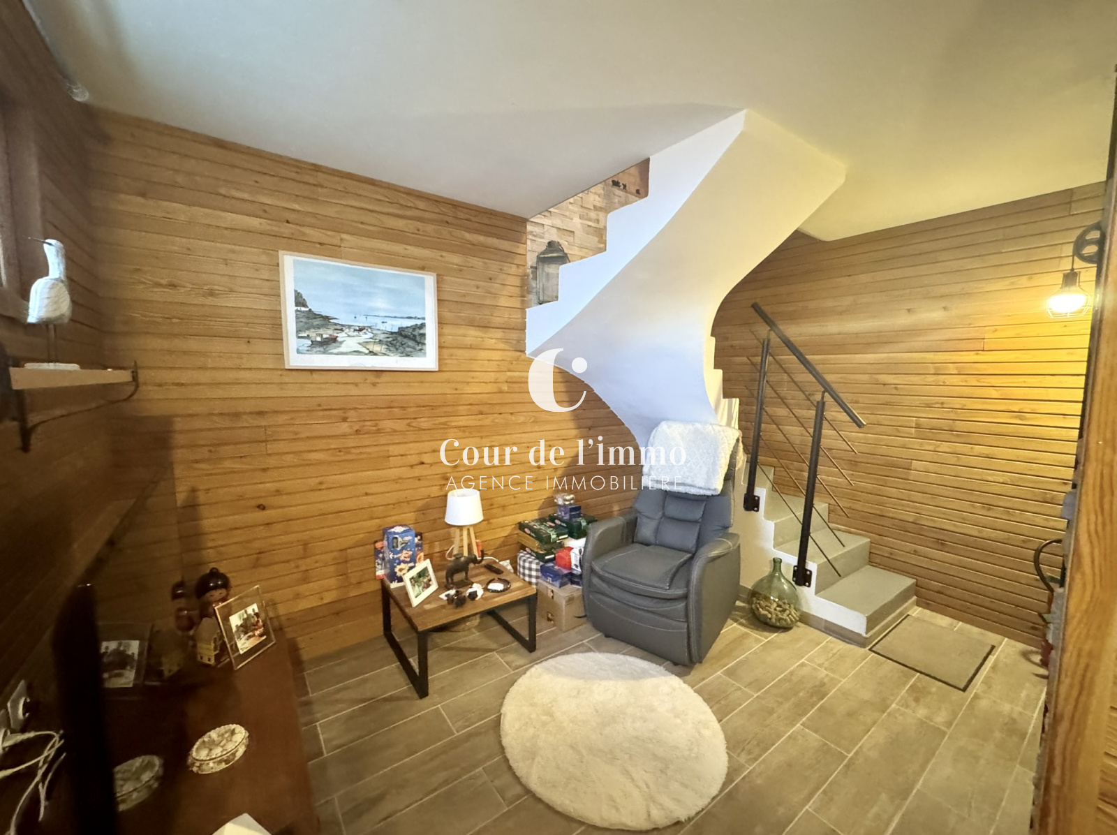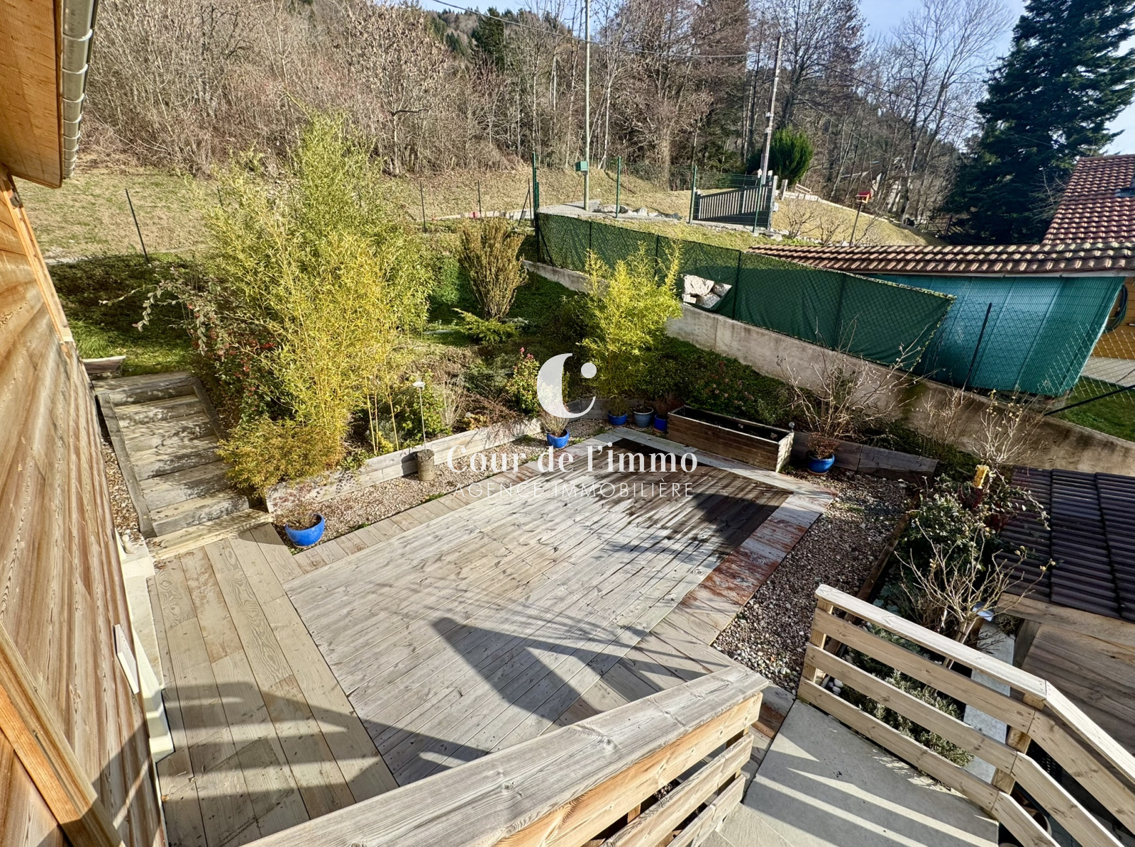 Situé sur les hauteurs de la commune de LUCINGES, venez découvrir cette maison individuelle type chalet entièrement rénovée en 2021 (extérieur / intérieur). Comprenant à l'étage principal : Une entrée, un bureau, une belle pièce à vivre avec poêle à bois, accès balcon et terrasse et une vue magnifique, une chambre et une salle d'eau avec WC. A l'étage : Une belle chambre. Au rez de inférieur : Une entrée, un petit salon, une grande chambre avec une salle de bain (baignoire et douche) et un WC, un espace cellier / buanderie.